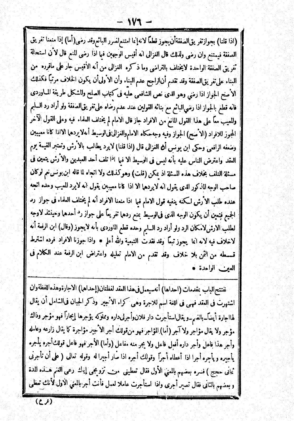 نفتتح الباب بمقدمات (احداها) أنه سيعمل في هذا العقد لفظتان (إحدهما) الاجارة وهذه اللفظة وان اشتهرت في العقد فهى في اللغة اسم للاجرة وهى كراء الاجير وذكر الجبان في الشامل أن يقال لها اجارة أيضا بالواو ويقال استأجرت دار فلان وأجر لى داره ومملوكه يؤجرها إيجازا فهو مؤجر وذاك مؤجر ولايقال مؤاجر ولا آجر (أما) المؤاجر فهو من قولك أجر الاجير مؤاجرة كما يقال زارعه وعامله وأجر هذا فاعل وأجر داره أفعل فاعل ولا يجر منه مفاعل (وأما) الاجر فهو فاعل قولك أجره يأجره يأجيره ويأجره أجرا إذا أعطاه أجرا وقولك أجره إذا صار أجيرا له وقوله تعالى (على أن تأجرني ثمانى حجج) فسره بعضهم بالمعني الاول فقال تعطيني من تزويجي إياك رعى الغنم هذه المدة وبعضهم بالثاني فقال تصير أجرى وإذا استأجرت عاملا لعمل فأنت أجر بالمعني الاول لانك تعطى