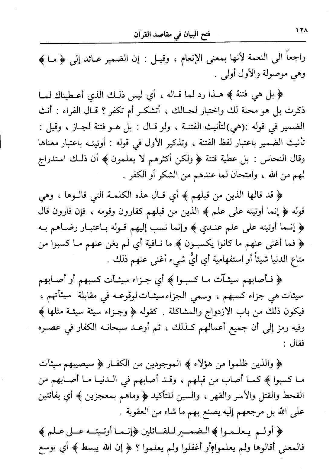 (أَوَلَمْ يَعْلَمُوا) الضمير للقائلين (إنما أوتيته على علم) فالمعنى أقالوها ولم يعلموا؟ أو أغفلوا ولم يعلموا؟ (إن الله يبسط) أي يوسع