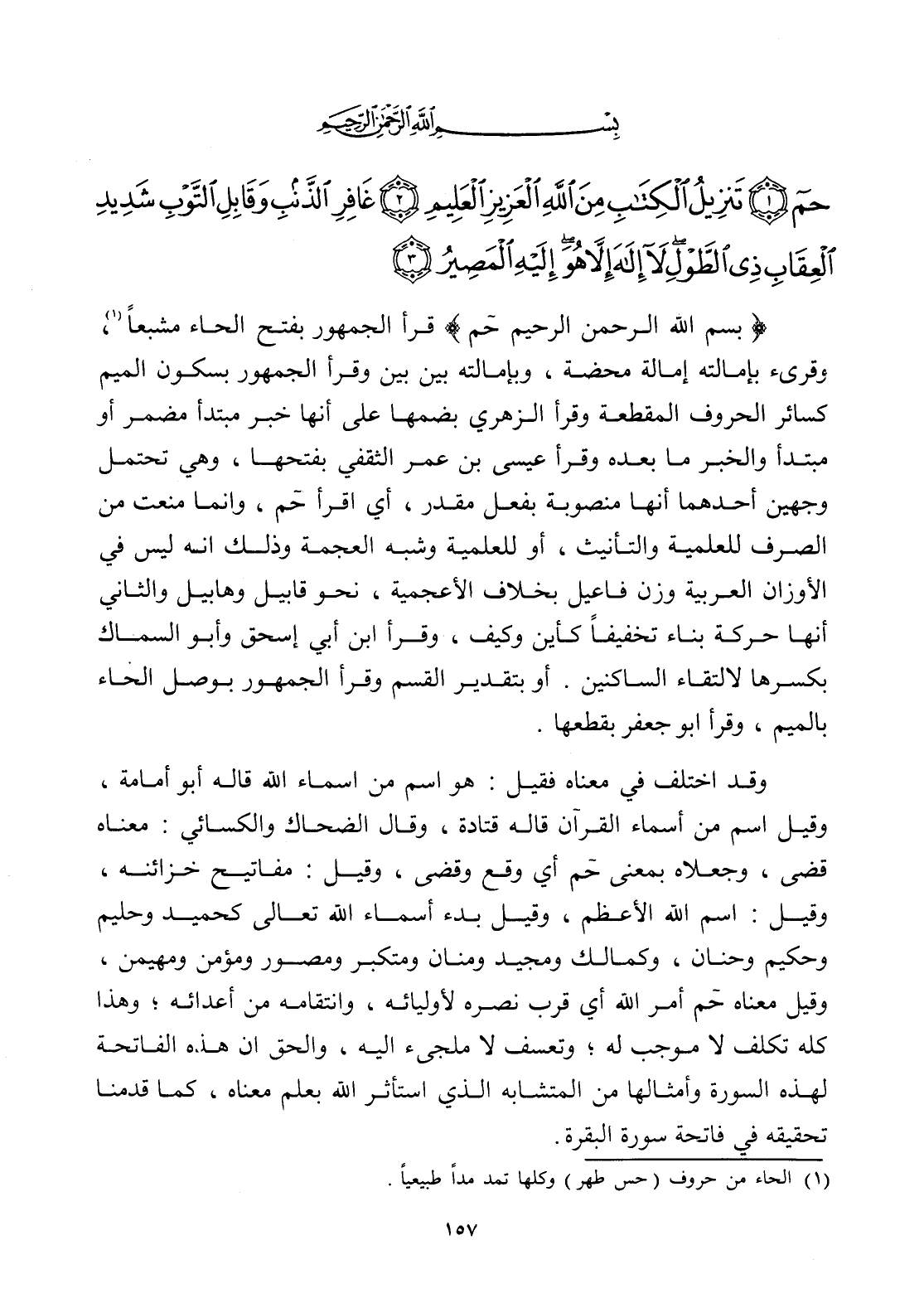 حم (1) تَنْزِيلُ الْكِتَابِ مِنَ اللَّهِ الْعَزِيزِ الْعَلِيمِ (2) غَافِرِ الذَّنْبِ وَقَابِلِ التَّوْبِ شَدِيدِ الْعِقَابِ ذِي الطَّوْلِ لَا إِلَهَ إِلَّا هُوَ إِلَيْهِ الْمَصِيرُ (3)