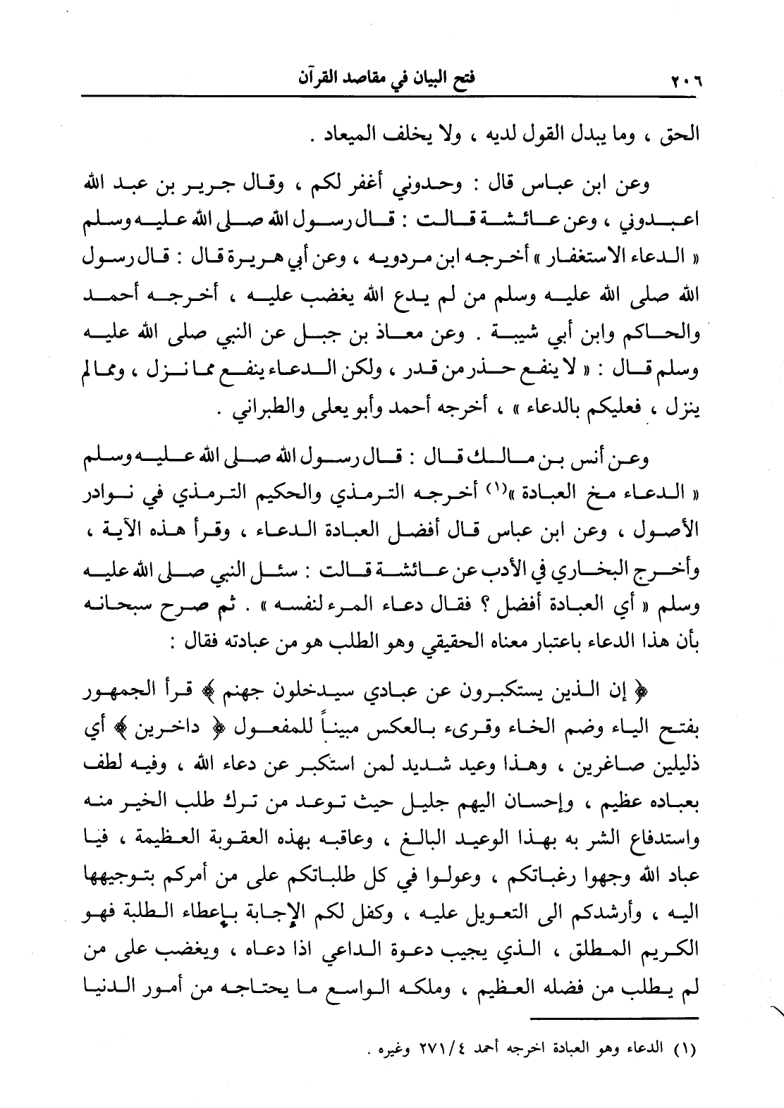 (¬1) الدعاء وهو العبادة أخرجه أحمد 4/ 271 وغيره.