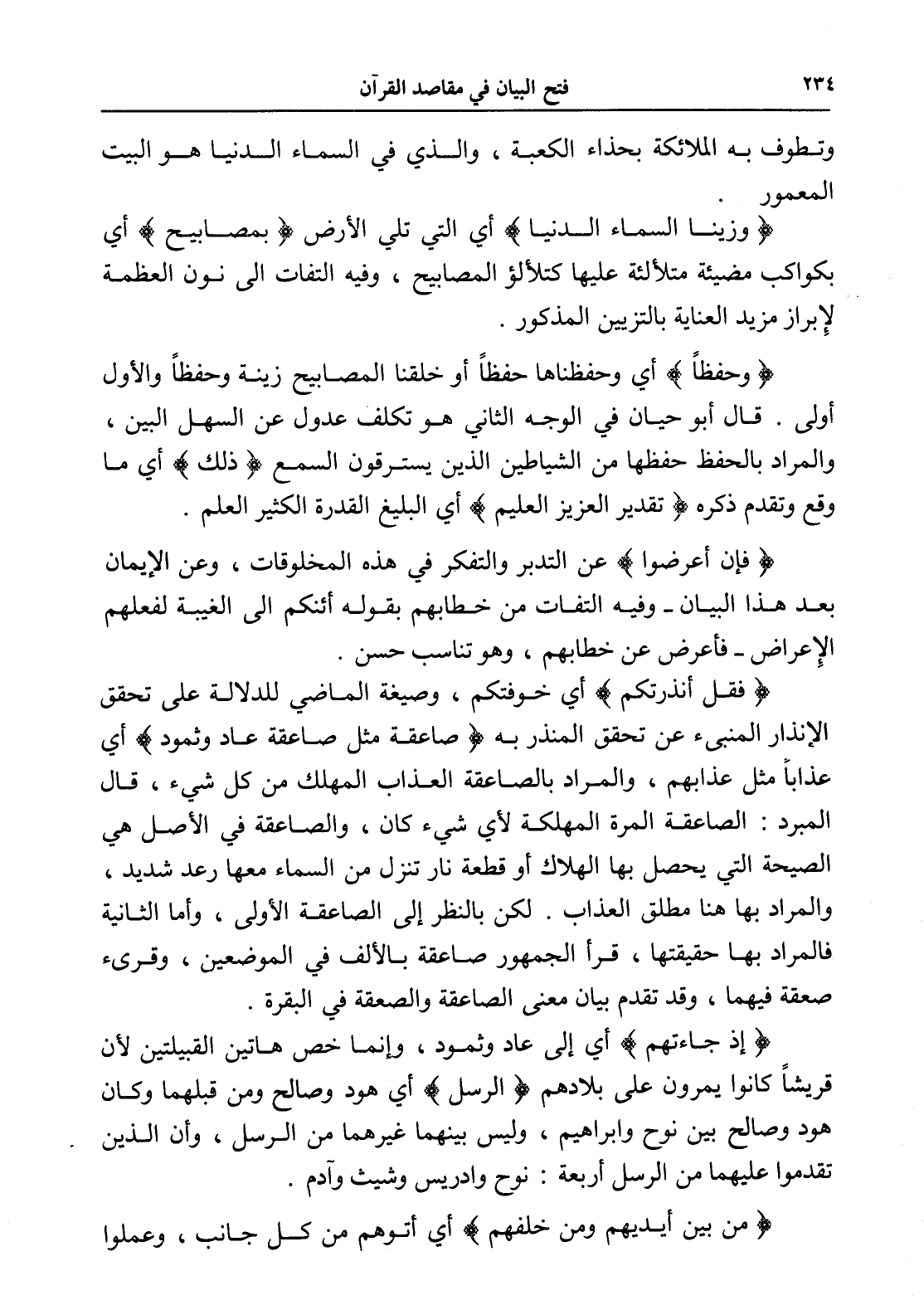 (وزينا السماء الدنيا) أي التي تلي الأرض (بمصابيح) أي بكواكب مضيئة متلألئة عليها كتلألؤ المصابيح، وفيه التفات إلى نون العظمة لإِبراز مزيد العناية بالتزيين المذكور.