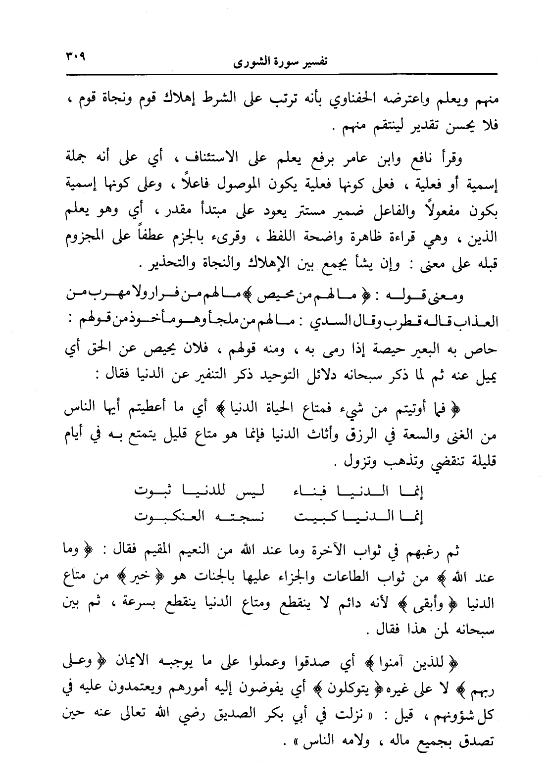 ومعنى قوله: (ما لهم من محيص) ما لهم من فرار ولا مهرب من العذاب قاله قطرب وقال السدي: ما لهم من ملجأ وهو مأخوذ من قولهم: حاص به البعير حيصة إذا رمى به، ومنه قولهم، فلان يحيص عن الحق أي يميل عنه ثم لما ذكر سبحانه دلائل التوحيد ذكر التنفير عن الدنيا فقال: