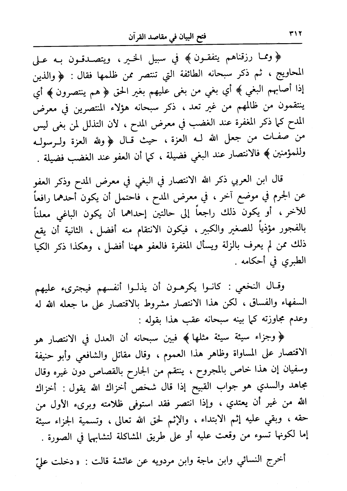 قال ابن العربي ذكر الله الانتصار في البغي في معرض المدح وذكر العفو عن الجرم في موضع آخر، في معرض المدح، فاحتمل أن يكون أحدهما رافعاً للآخر، أو يكون ذلك راجعاً إلى حالتين إحداهما أن يكون الباغي معلناً بالفجور مؤذياً للصغير والكبير، فيكون الانتقام منه أفضل، الثانية أن يقع ذلك ممن لم يعرف بالزلة ويسأل المغفرة فالعفو ههنا أفضل، وهكذا ذكر الكيا الطبري في أحكامه.