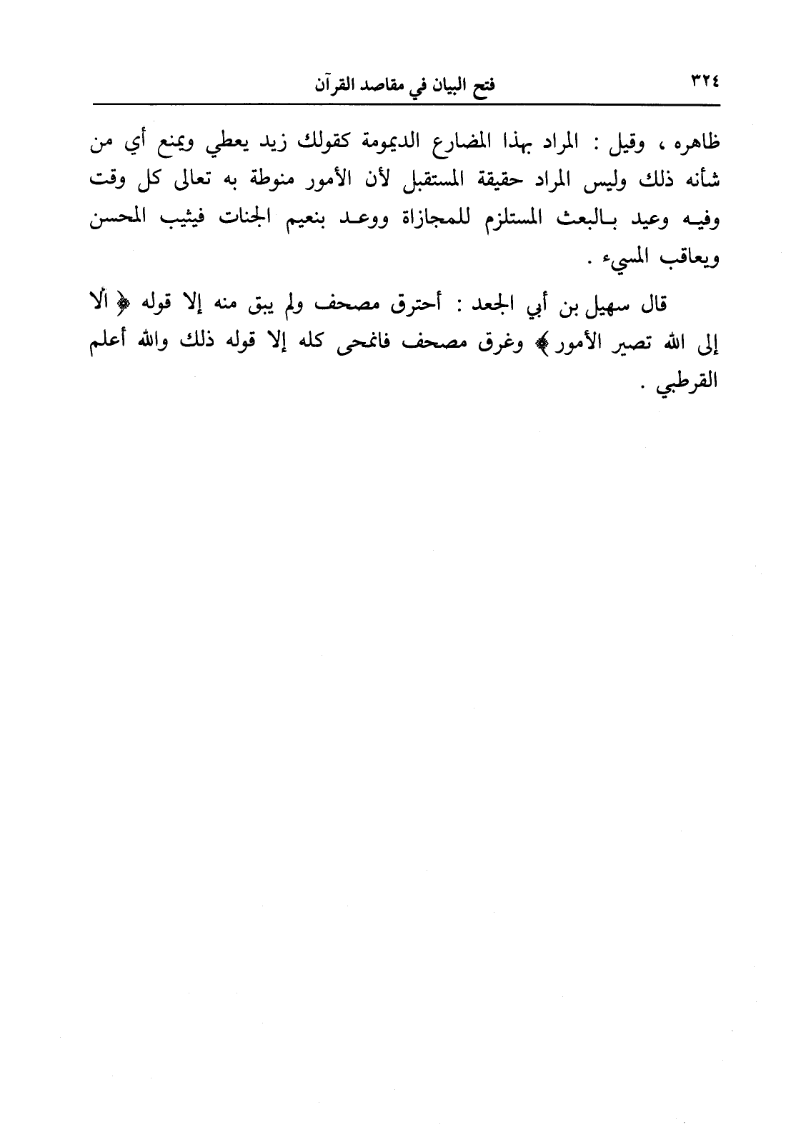 قال سهيل بن أبي الجعد: أحترق مصحف ولم يبق منه إلا قوله (ألا إلى الله تصير الأمور) وغرق مصحف فانمحى كله إلا قوله ذلك والله أعلم القرطبي.