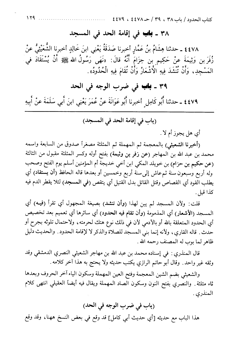 8 - (باب فِي إِقَامَةِ الْحَدِّ فِي الْمَسْجِدِ أَيْ هَلْ يَجُوزُ)