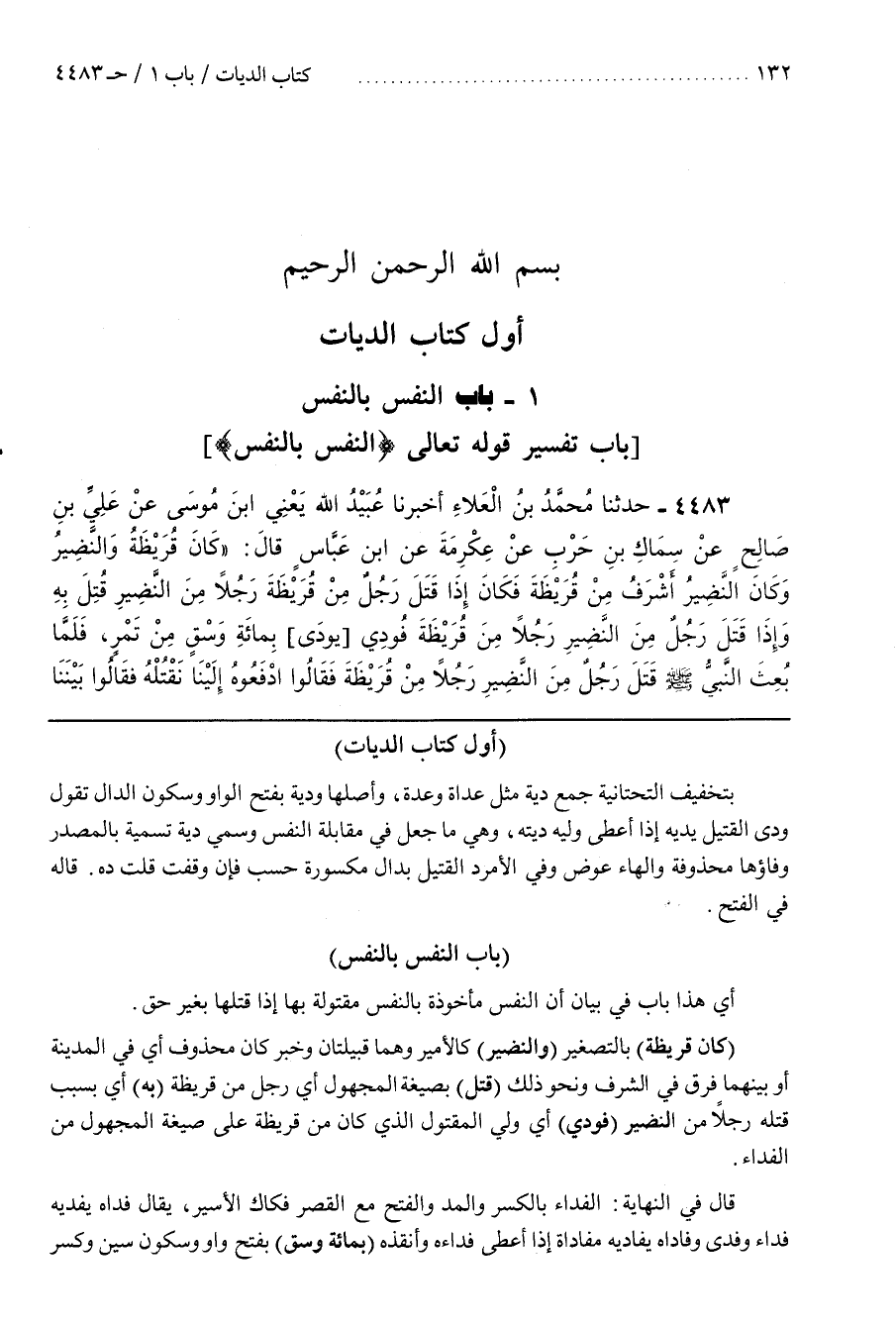 6 - أَيْ هَذَا بَابٌ فِي بَيَانِ أَنَّ النَّفْسَ مَأْخُوذَةٌ بِالنَّفْسِ مَقْتُولَةٌ بِهَا إِذَا قَتَلَتْهَا بِغَيْرِ حَقٍّ