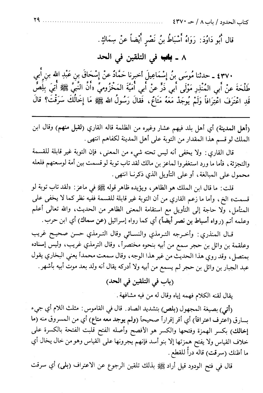 (بَاب فِي التَّلْقِينِ فِي الْحَدِّ)