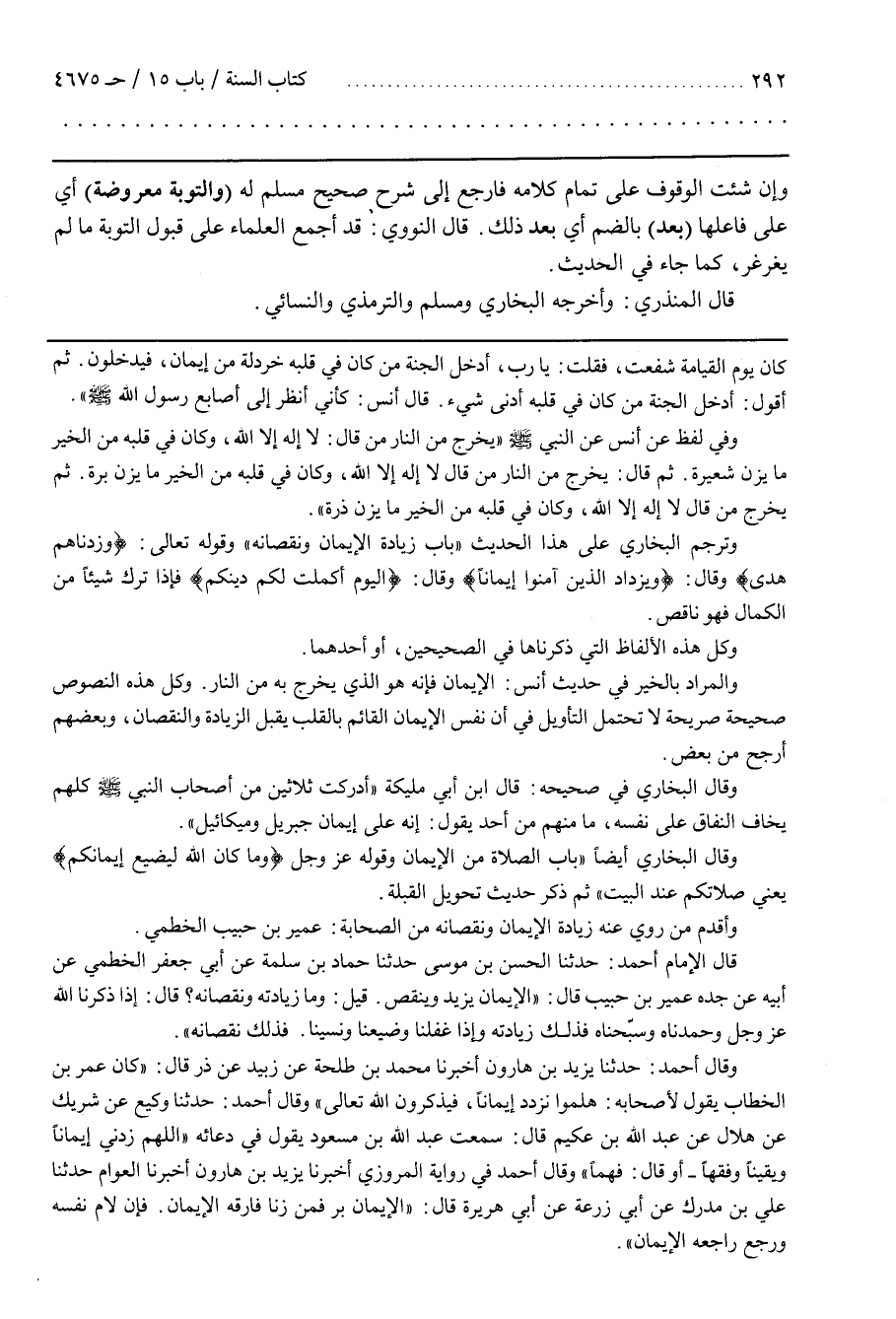 وَكُلّ هَذِهِ النُّصُوص صَحِيحَة صَرِيحَة لَا تَحْتَمِل التَّأْوِيل فِي أَنَّ نَفْس الْإِيمَان الْقَائِم بِالْقَلْبِ يَقْبَل الزِّيَادَة وَالنُّقْصَان وَبَعْضهمْ أَرْجَح مِنْ بَعْض