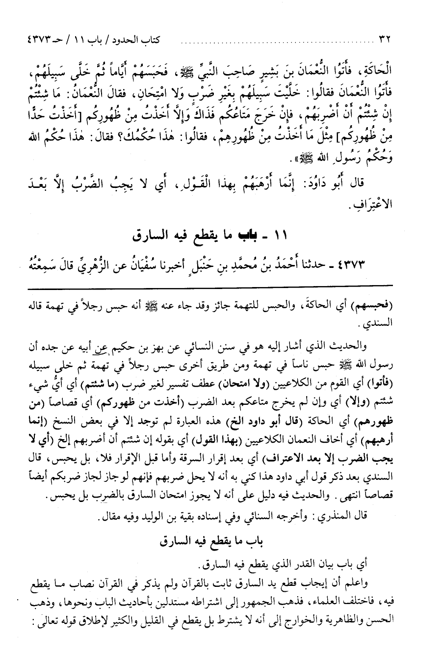 وَالْحَدِيثُ الَّذِي أَشَارَ إِلَيْهِ هُوَ فِي سُنَنِ النَّسَائِيِّ عَنْ بَهْزِ بْنِ حَكِيمٍ عَنْ أَبِيهِ عَنْ جَدِّهِ أَنَّ رَسُولَ اللَّهِ صَلَّى اللَّهُ عَلَيْهِ وسلم حَبَسَ نَاسًا فِي تُهْمَةٍ وَمِنْ طَرِيقٍ أُخْرَى حَبَسَ رَجُلًا فِي تُهْمَةٍ ثُمَّ خَلَّى سَبِيلَهُ (فَأَتَوُا) أَيِ الْقَوْمُ مِنَ الْكَلَاعِيِّينَ (وَلَا امْتِحَانَ) عَطْفُ تَفْسِيرٍ لِغَيْرِ ضَرْبٍ (مَا شِئْتُمْ) أَيْ أَيُّ شَيْءٍ شِئْتُمْ (وَإِلَّا) أَيْ وَإِنْ لَمْ يَخْرُجْ مَتَاعُكُمْ بَعْدَ الضَّرْبِ (أَخَذْتُ مِنْ ظُهُورِكُمْ) أَيْ قِصَاصًا (مِنْ ظُهُورِهِمْ) أَيِ الْحَاكَةِ (قَالَ أَبُو دَاوُدَ إِلَخْ) هَذِهِ الْعِبَارَةُ لَمْ تُوجَدْ إِلَّا فِي بَعْضِ النُّسَخِ (إِنَّمَا أَرْهَبَهُمْ) أَيْ أَخَافَ النُّعْمَانُ الْكَلَاعِيِّينَ (بِهَذَا الْقَوْلِ) أَيْ بِقَوْلِهِ إِنْ شِئْتُمْ أَنْ أَضْرِبَهُمْ إِلَخْ (أَيْ لَا يَجِبُ الضَّرْبُ إِلَّا بَعْدَ الِاعْتِرَافِ) أَيْ بَعْدَ إِقْرَارِ السَّرِقَةِ وَأَمَّا قَبْلَ الْإِقْرَارِ فَلَا بَلْ يُحْبَسُ قَالَ السِّنْدِيُّ بَعْدَ ذِكْرِ قَوْلِ أَبِي دَاوُدَ هَذَا كَنَّى بِهِ أَنَّهُ لَا يَحِلُّ ضَرْبُهُمْ فَإِنَّهُ لَوْ جَازَ لَجَازَ ضَرْبُكُمْ أَيْضًا قِصَاصًا انْتَهَى