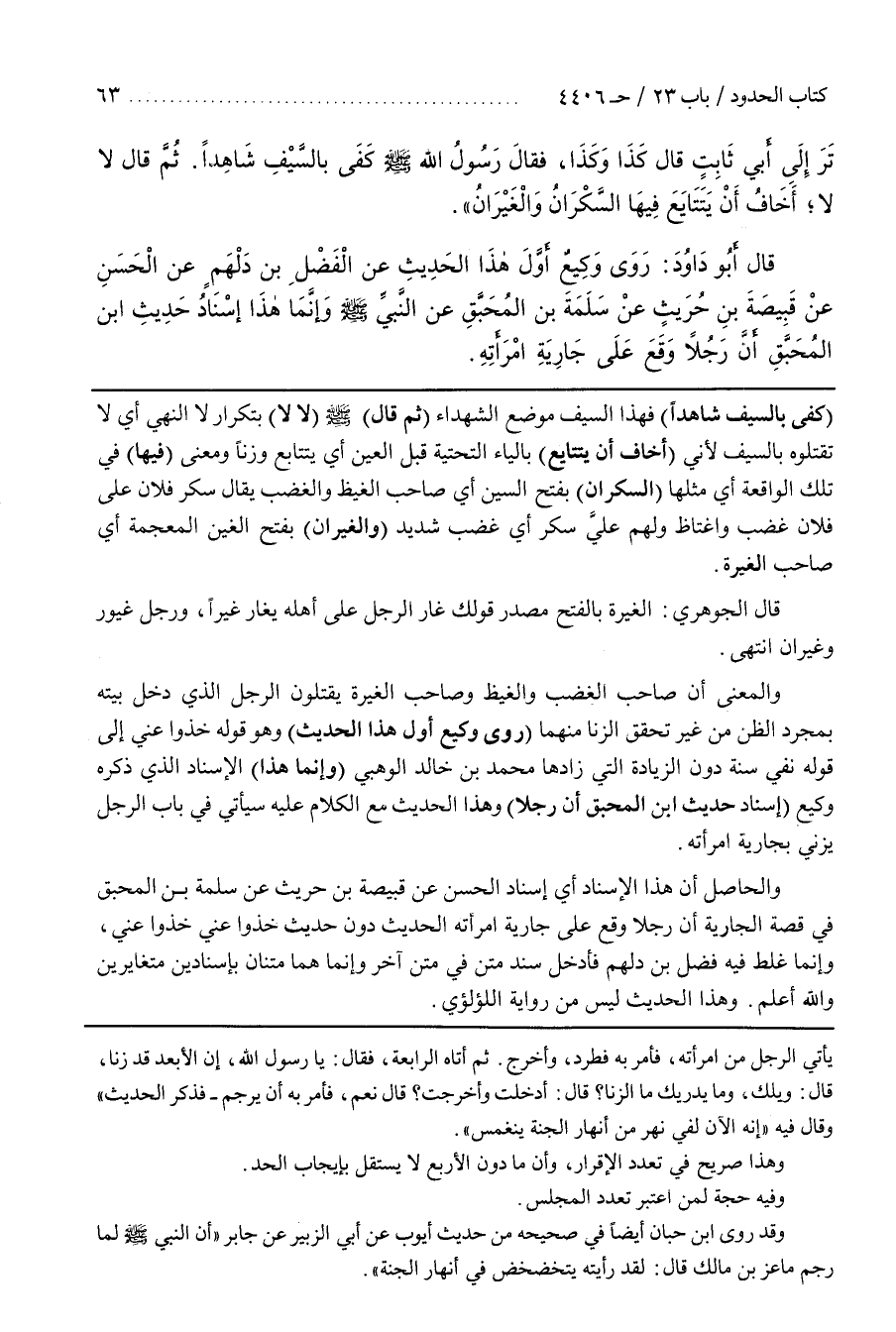 وَالْمَعْنَى أَنَّ صَاحِبَ الْغَضَبِ وَالْغَيْظِ وَصَاحِبَ الْغَيْرَةِ يَقْتُلُونَ الرَّجُلَ الَّذِي دَخَلَ بَيْتَهُ بِمُجَرَّدِ الظَّنِّ مِنْ غير تحقق الزنى مِنْهُمَا (رَوَى وَكِيعٌ أَوَّلَ هَذَا الْحَدِيثِ) وَهُوَ قَوْلُهُ خُذُوا عَنِّي إِلَى قَوْلِهِ نَفْيُ سَنَةٍ دُونَ الزِّيَادَةِ الَّتِي زَادَهَا مُحَمَّدُ بْنُ خَالِدٍ الْوَهْبِيُّ (وَإِنَّمَا هَذَا) الْإِسْنَادُ الَّذِي ذَكَرَهُ وَكِيعٌ (إسناد حديث بن الْمُحَبَّقِ أَنَّ رَجُلًا) وَهَذَا الْحَدِيثُ مَعَ الْكَلَامِ عَلَيْهِ سَيَأْتِي فِي بَابِ الرَّجُلِ يَزْنِي بِجَارِيَةِ امْرَأَتِهِ