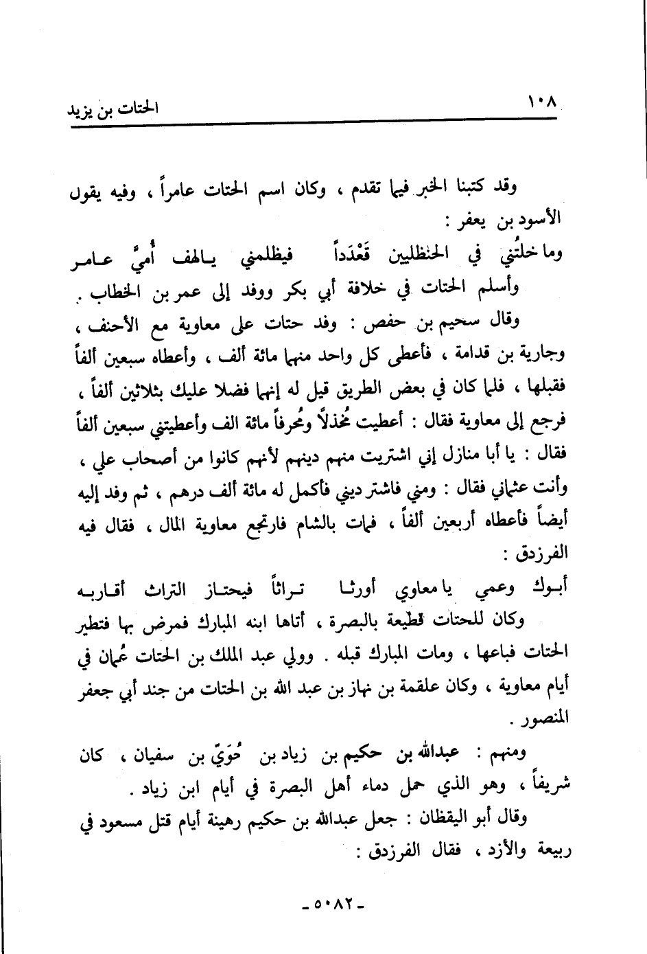 وقال أَبُو اليقظان: جعل عَبْد اللَّه بْن حكيم رهينة أيام قتل مَسْعُود فِي ربيعة والأزد، فقال الفرزدق: