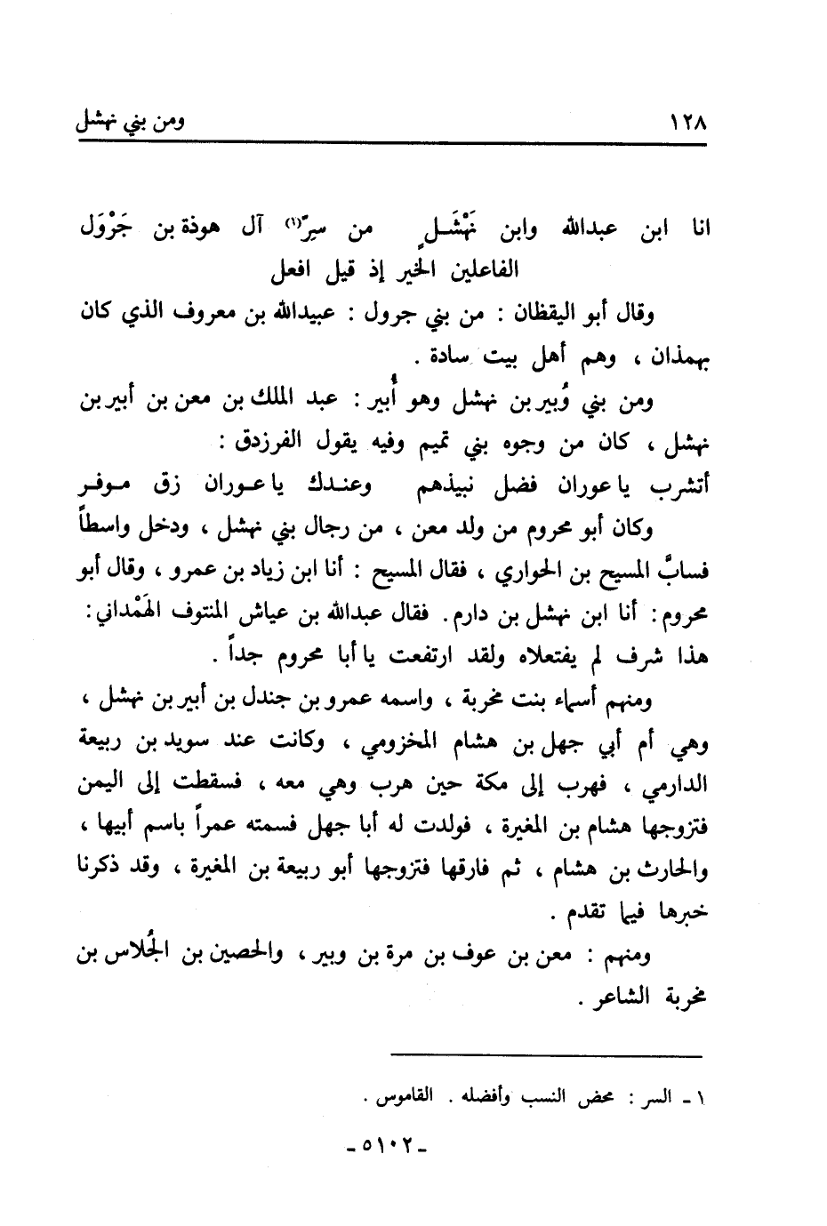 أَنَا ابن عَبْد اللَّه وابن نَهْشَلٍ ... من سِر [1] آل هوذة بْن جَرْوَل