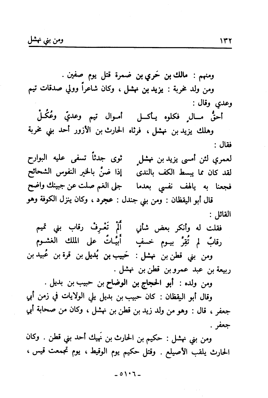 ومن ولد مخربة: يزيد بْن نهشل، وكان شاعرًا وولي صدقات تيم وعدي وقال: