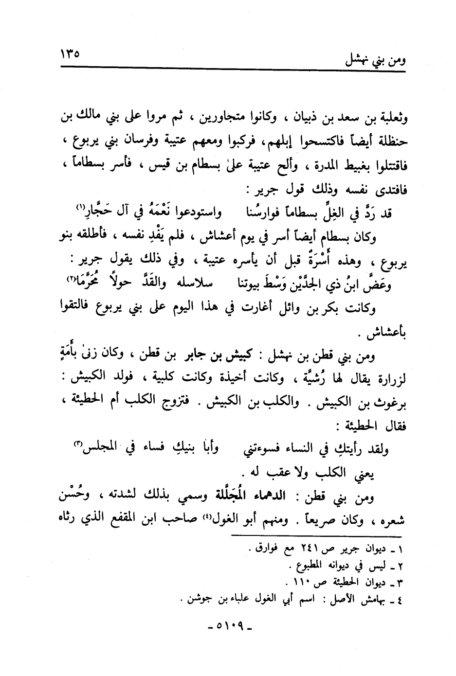 ومن بني قطن بْن نهشل: كبيش بْن جَابِر بْن قطن، وكان زنى بأَمَةٍ لزرارة يُقَالُ لها رُشيَّة، وكانت أخيذة وكانت كلبية، فولد الكبيش: