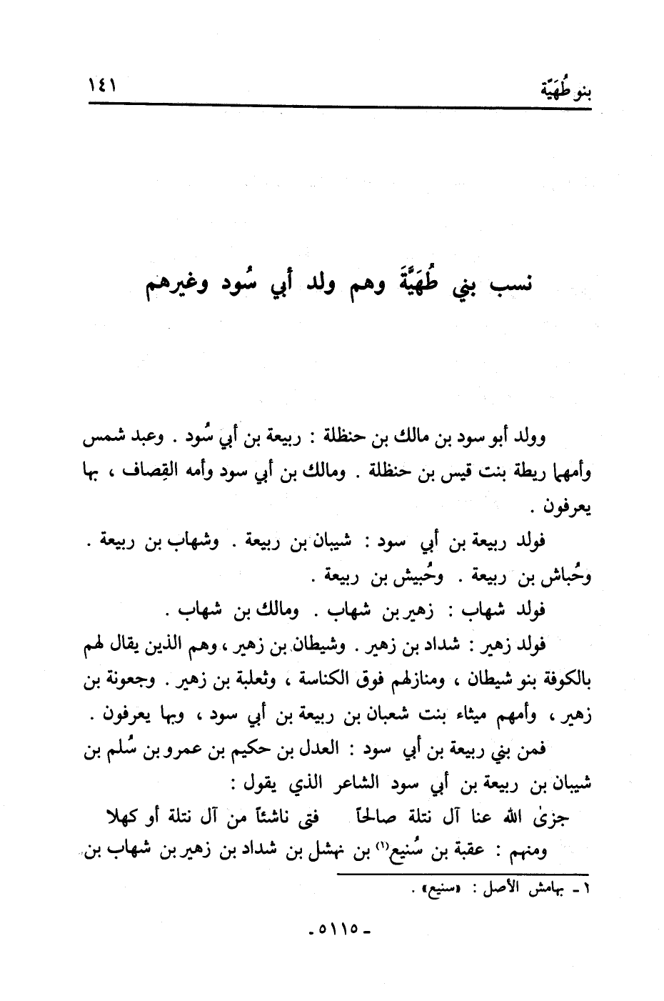نسب بني طُهَيَّةَ وهم ولد أَبِي سُود وغيرهم