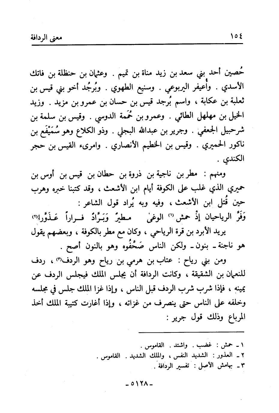 ردف للنعمان بْن الشقيقة، وكانت الردافة أن يجلس الملك فيجلس الردف عن يمينه، فإذا شرب شرب الردف قبل الناس، وَإِذَا غزا الملك جلس فِي مجلسه وخلفه على الناس حَتَّى ينصرف من غزاته، وَإِذَا أغارت كتيبة الملك أَخَذَ المرباع وذلك قول جرير: