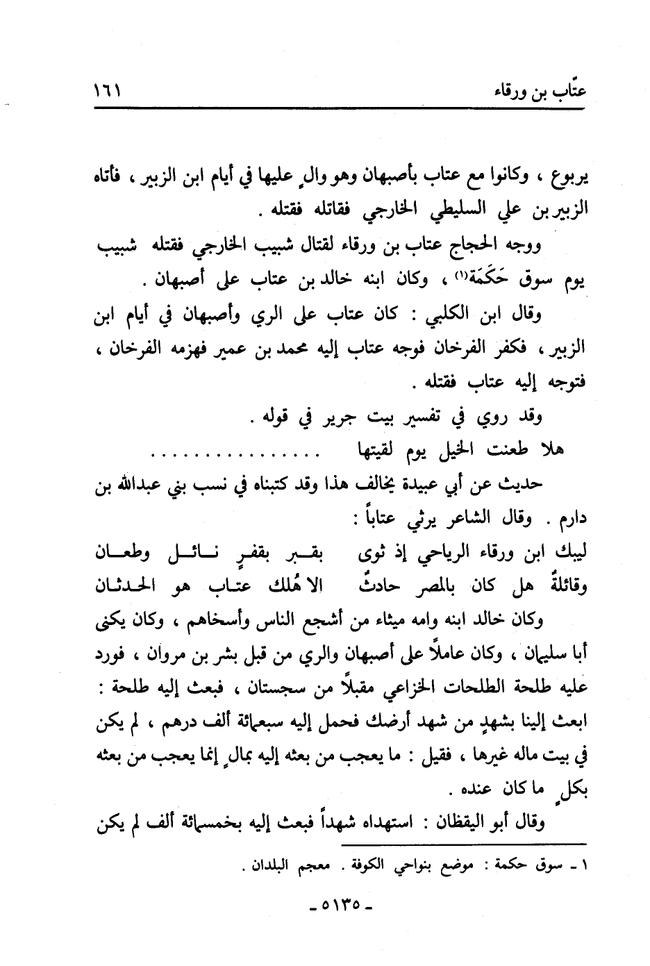 ووجه الحجاج عتاب بْن ورقاء لقتال شبيب الخارجي فقتله شبيب يوم سوق حَكَمَة [1] ، وكان ابنه خَالِد بْن عتاب على أصبهان.