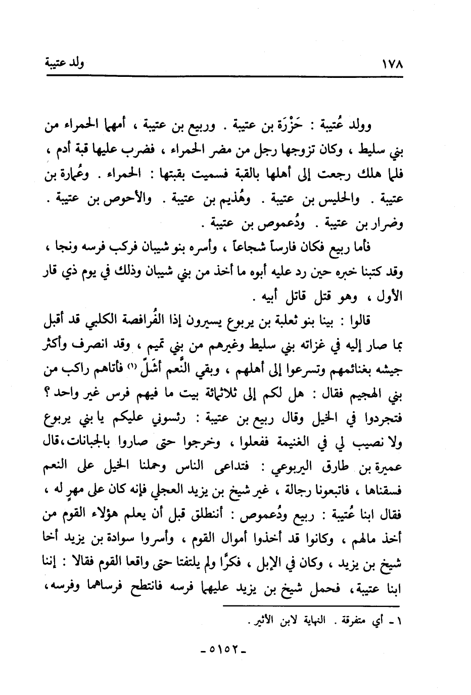 فتجردوا فِي الخيل وقال ربيع بْن عتيبة: رئسوني عليكم يا بني يربوع ولا نصيب لي فِي الغنيمة ففعلوا، وخرجوا حَتَّى صاروا بالجبانات، قال عميرة بْن طارق اليربوعي: فتداعى الناس وحملنا الخيل على النعم فسقناها، فاتبعونا رجالة، غير شيخ بْن يزيد العجلي فإنه كان على مهرٍ له، فقال ابنا عُتيبة: ربيع ودُعموص: أننطلق قبل أن يعلم هؤلاء القوم من أَخَذَ مالهم، وكانوا قد أخذوا أموال القوم، وأسروا سوادة بْن يزيد أخا شيخ بْن يزيد، وكان فِي الإبل، فكرَّا ولم يلتفتا حَتَّى واقعا القوم فقالا: إننا ابنا عتيبة، فحمل شيخ بْن يزيد عليهما فرسه فانتطح فرساهما وفرسه،