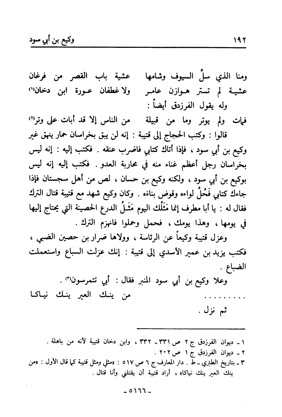 [3] بتاريخ الطبري- ط. دار المعارف ج 6 ص 517: «مثلي ومثل قتيبة كما قال الأول: «من ينك العير بنك نياكا» ، أراد قتيبة أن يقتلني وأنا قتال.