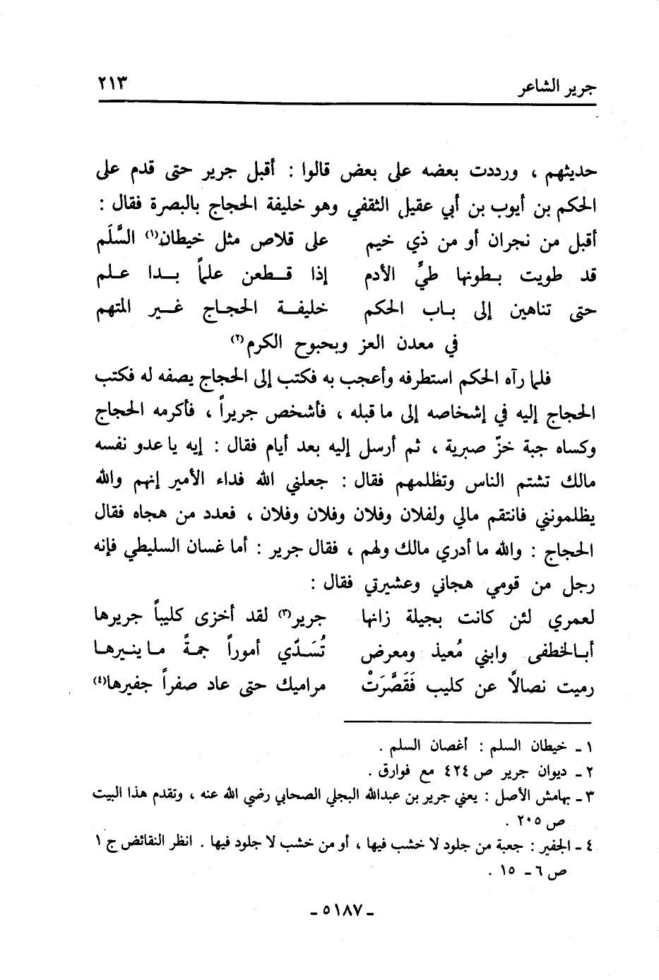 [3] بهامش الأصل: يعني جرير بن عبد الله البجلي الصحابي رضي الله عنه، وتقدم هذا البيت ص 205.