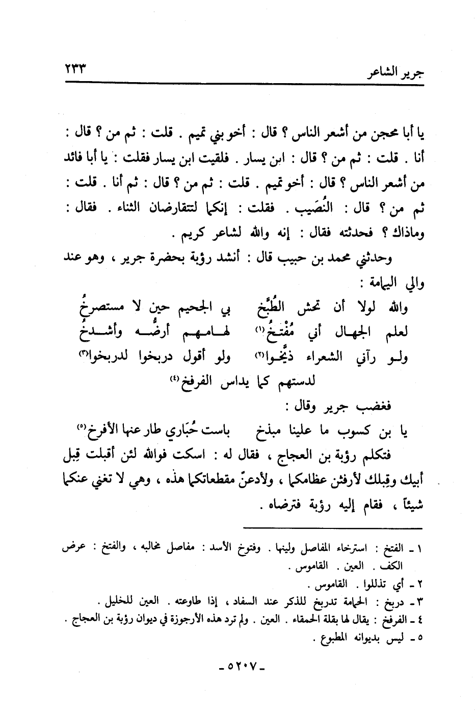 وحدثني مُحَمَّد بْن حبيب قال: أنشد رؤبة بحضرة جرير، وهو عند والي اليمامة: