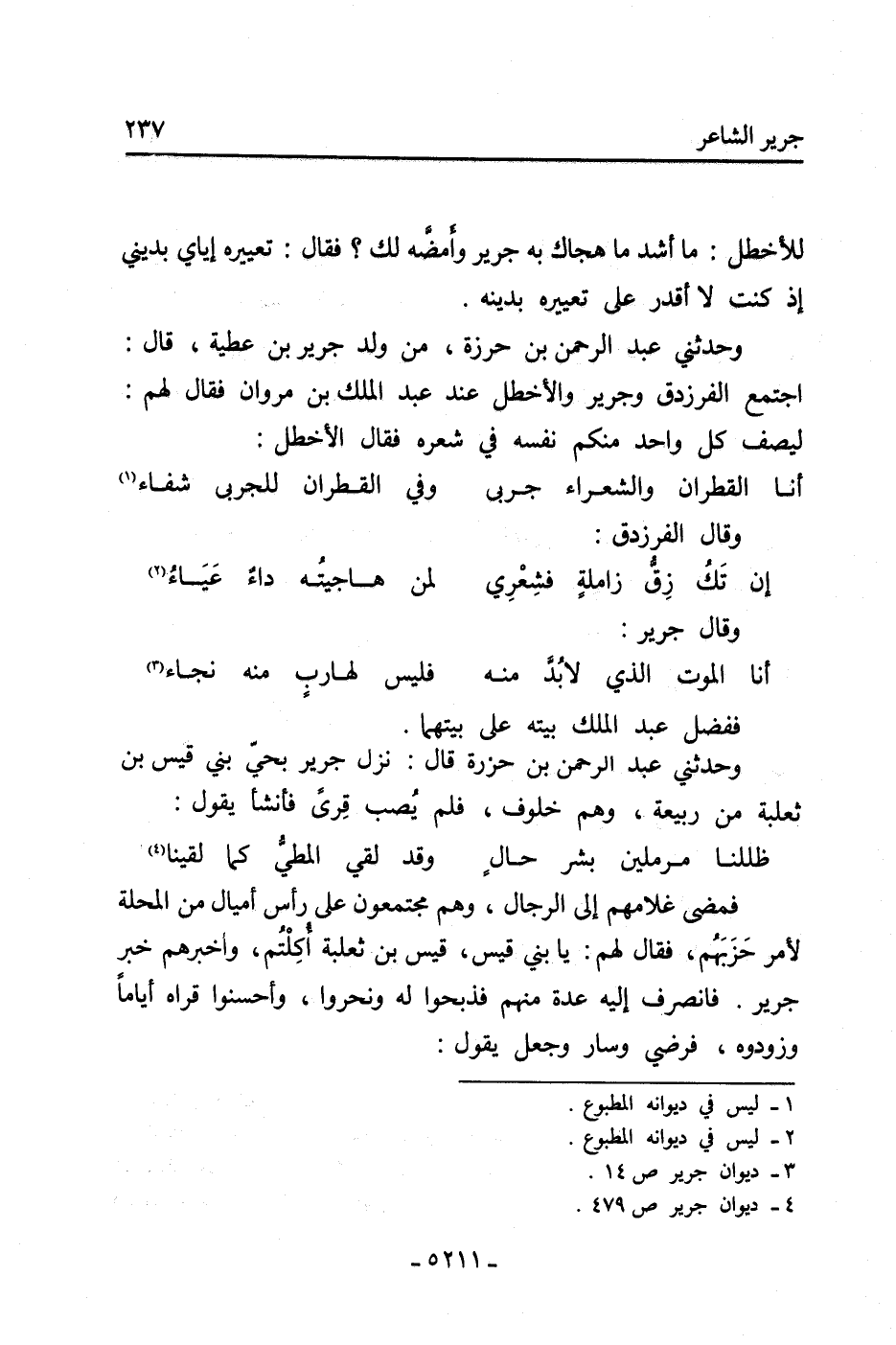للأخطل: ما أشد ما هجاك به جرير وأَمضَّه لك؟ فقال: تعييره إياي بديني إذ كنت لا أقدر على تعييره بدينه.