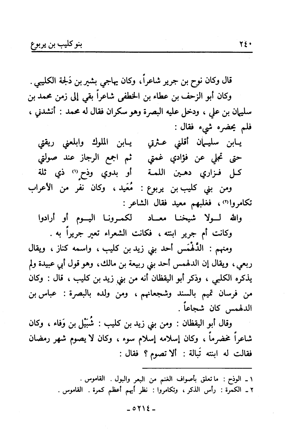وقال أَبُو اليقظان: ومن بني زَيْد بْن كليب: شُبَيْل بْن وَفاء،