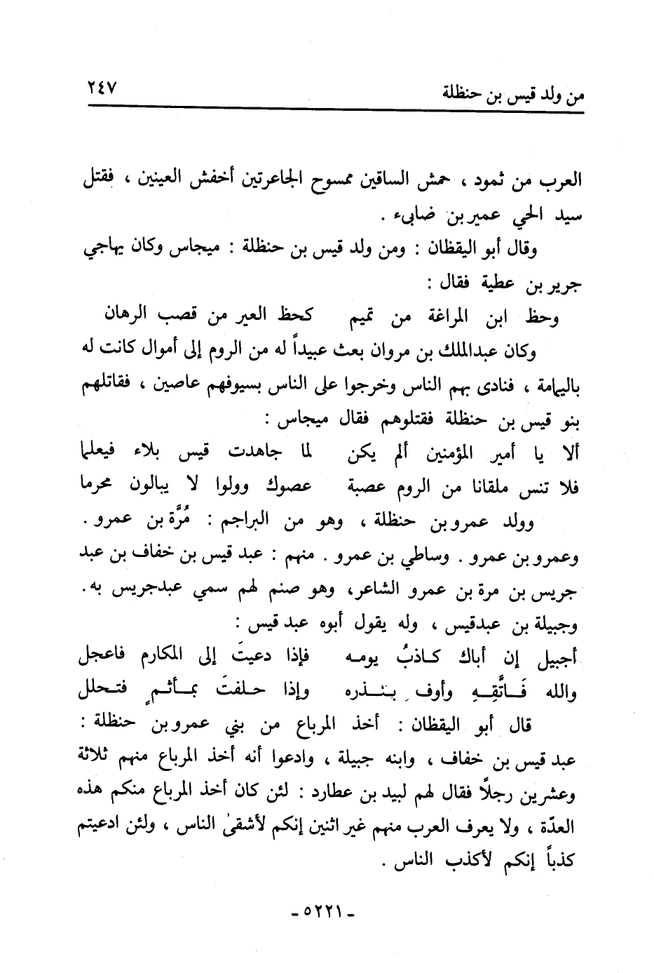 قال أَبُو اليقظان: أَخَذَ المرباع من بني عمرو بْن حنظلة: