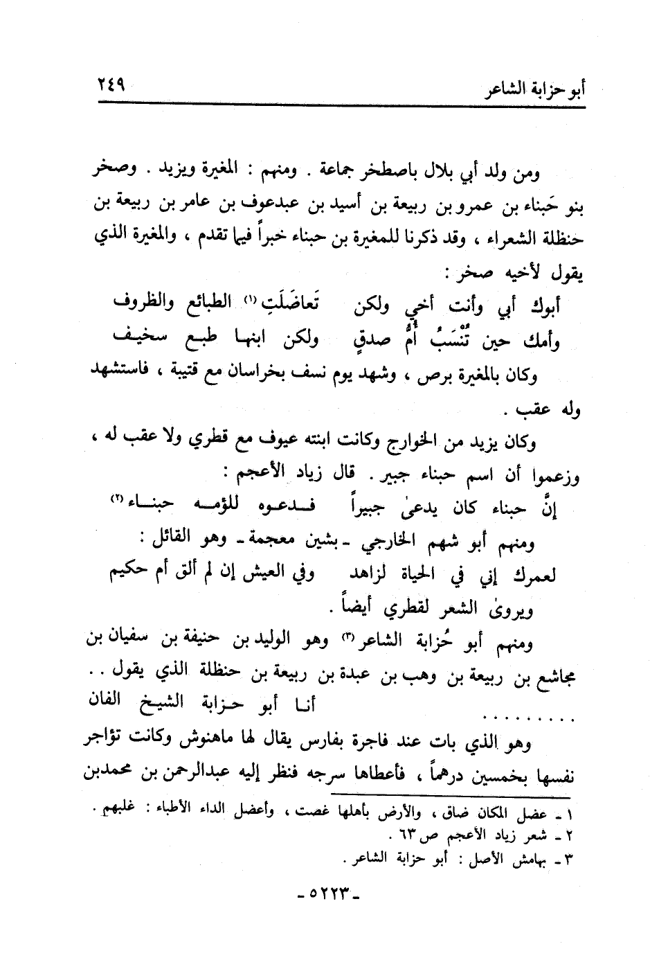 ومنهم أَبُو حُزابة الشاعر [3] وهو الْوَلِيد بْن حنيفة بْن سُفْيَان بْن مجاشع بْن ربيعة بْن وهب بْن عبدة بْن ربيعة بْن حنظلة الَّذِي يقول..