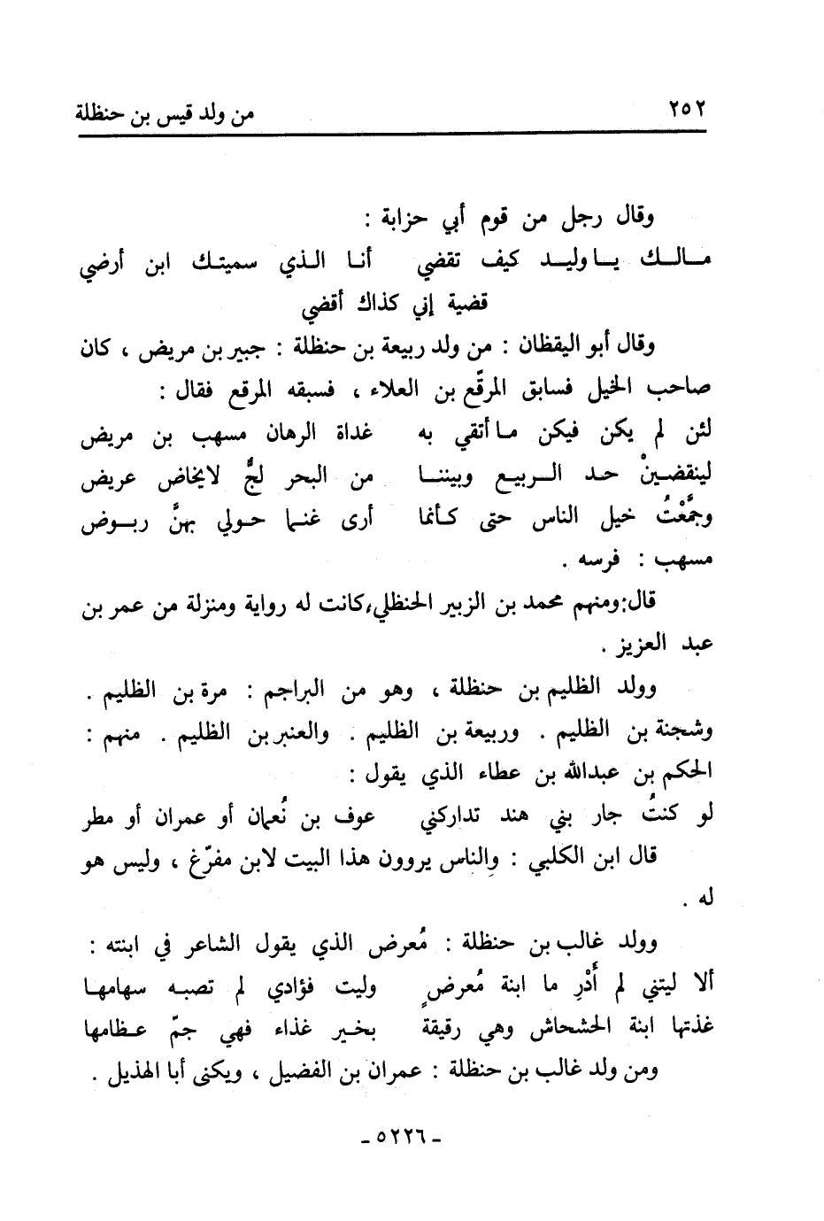 ومن ولد غالب بْن حنظلة: عِمْرَانَ بْن الفضيل، ويكنى أَبَا الهذيل.