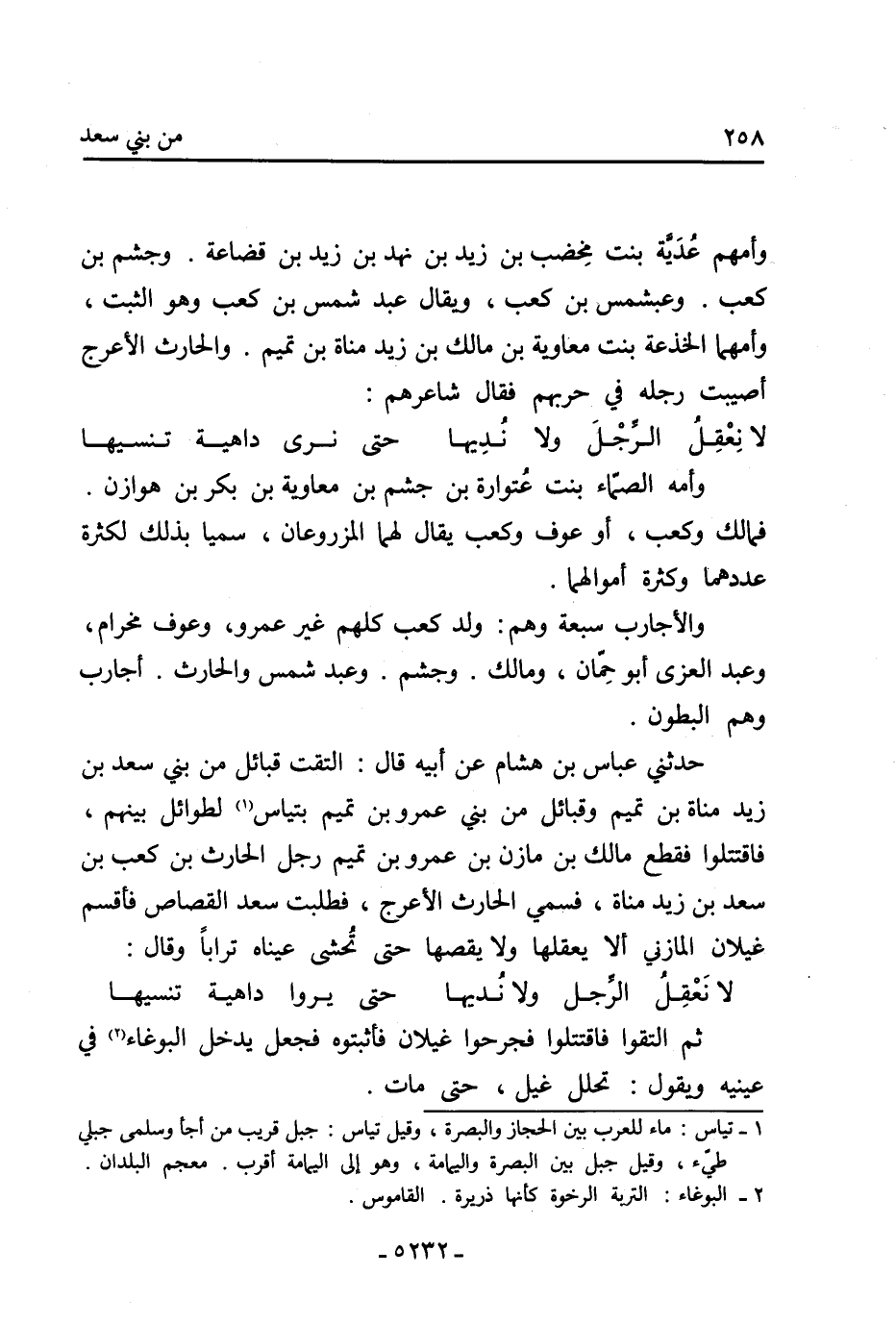 [1] تياس: ماء للعرب بين الحجاز والبصرة، وقيل تياس: جبل قريب من أجأ وسلمى جبلي طيّئ، وقيل بل بين البصرة واليمامة، وهو إلى اليمامة أقرب. معجم البلدان.