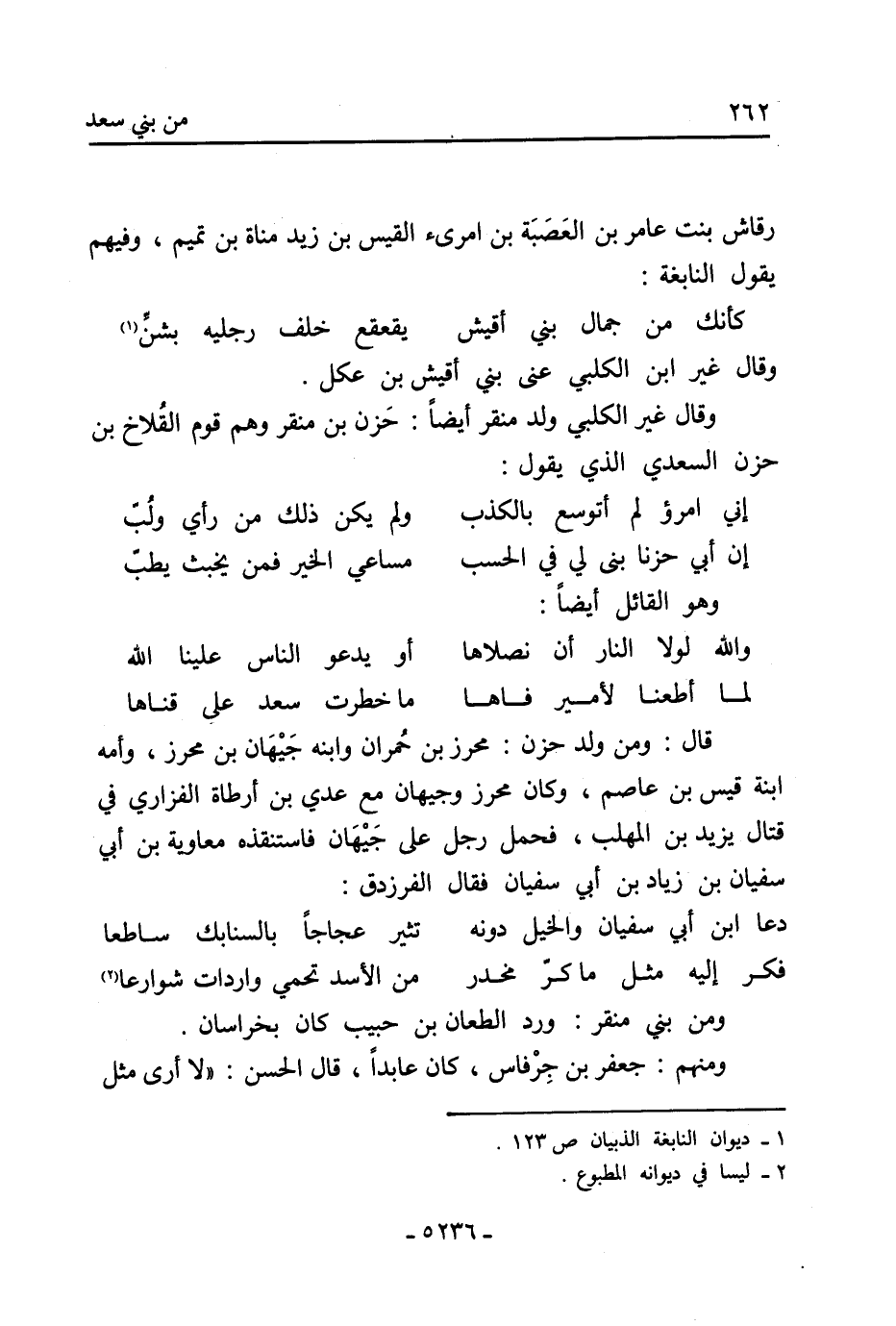 وقال غير الكلبي ولد منقر أيضًا: حَزن بْن منقر وهم قوم القُلاخ بْن حزن السعدي الَّذِي يقول:
