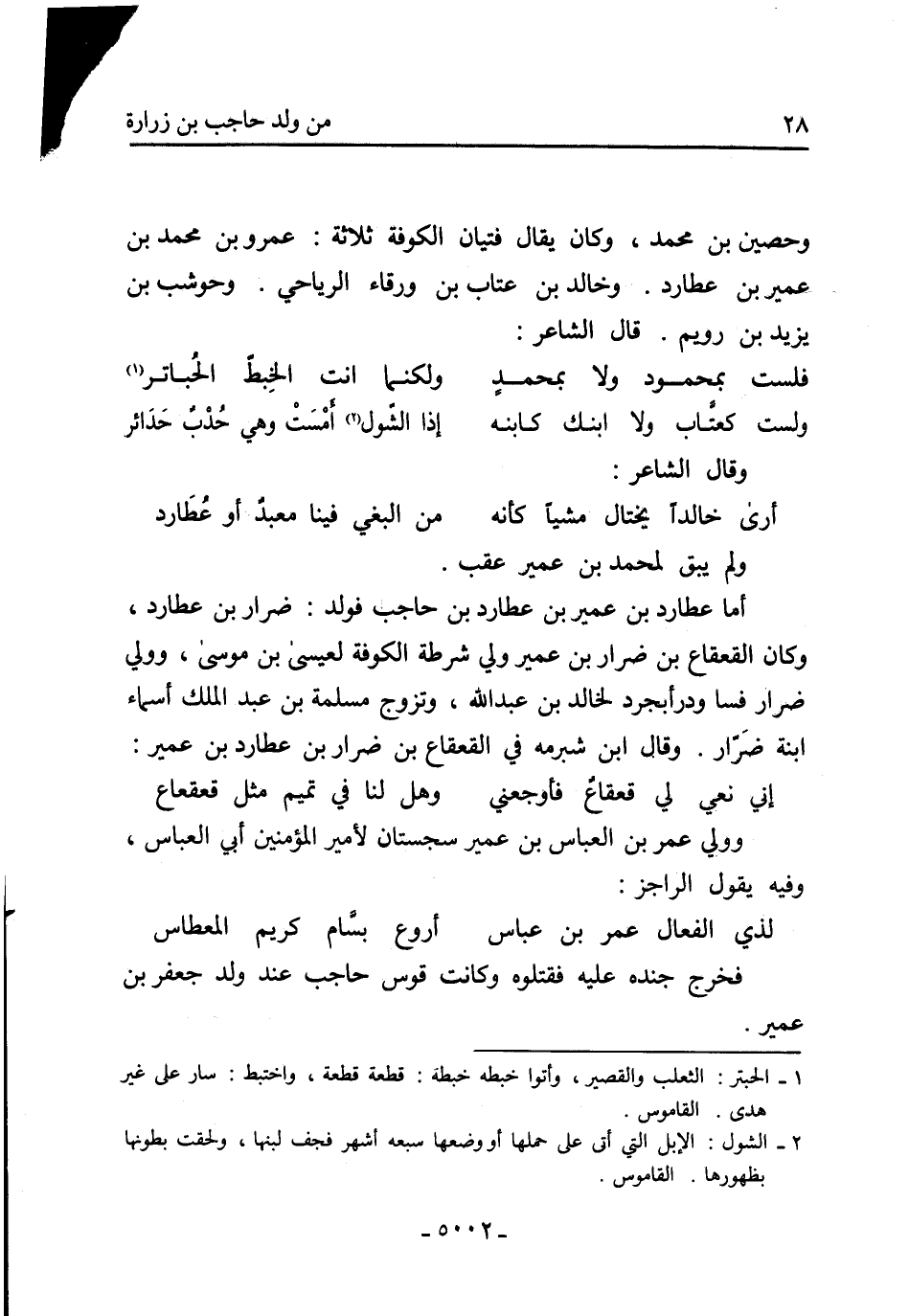 وحصين بْن مُحَمَّد، وكان يُقَالُ فتيان الكوفة ثلاثة: عمرو بْن مُحَمَّد بْن عمير بْن عطارد. وخالد بْن عتاب بْن ورقاء الرياحي. وحوشب بْن يزيد بْن رويم. قال الشاعر:
