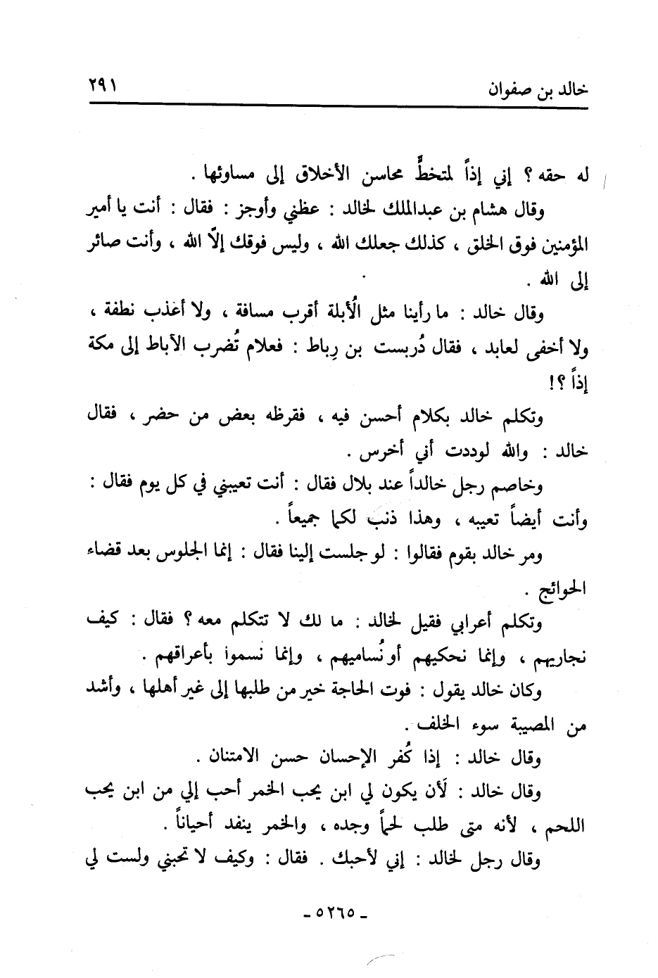 وقال هشام بْن عَبْد الملك لخالد: عظني وأوجز: فقال: أنت يا أمير المؤمنين فوق الخلق، كذلك جعلك الله، وليس فوقك إلّا اللَّه، وأنت صائر إِلَى اللَّه.
