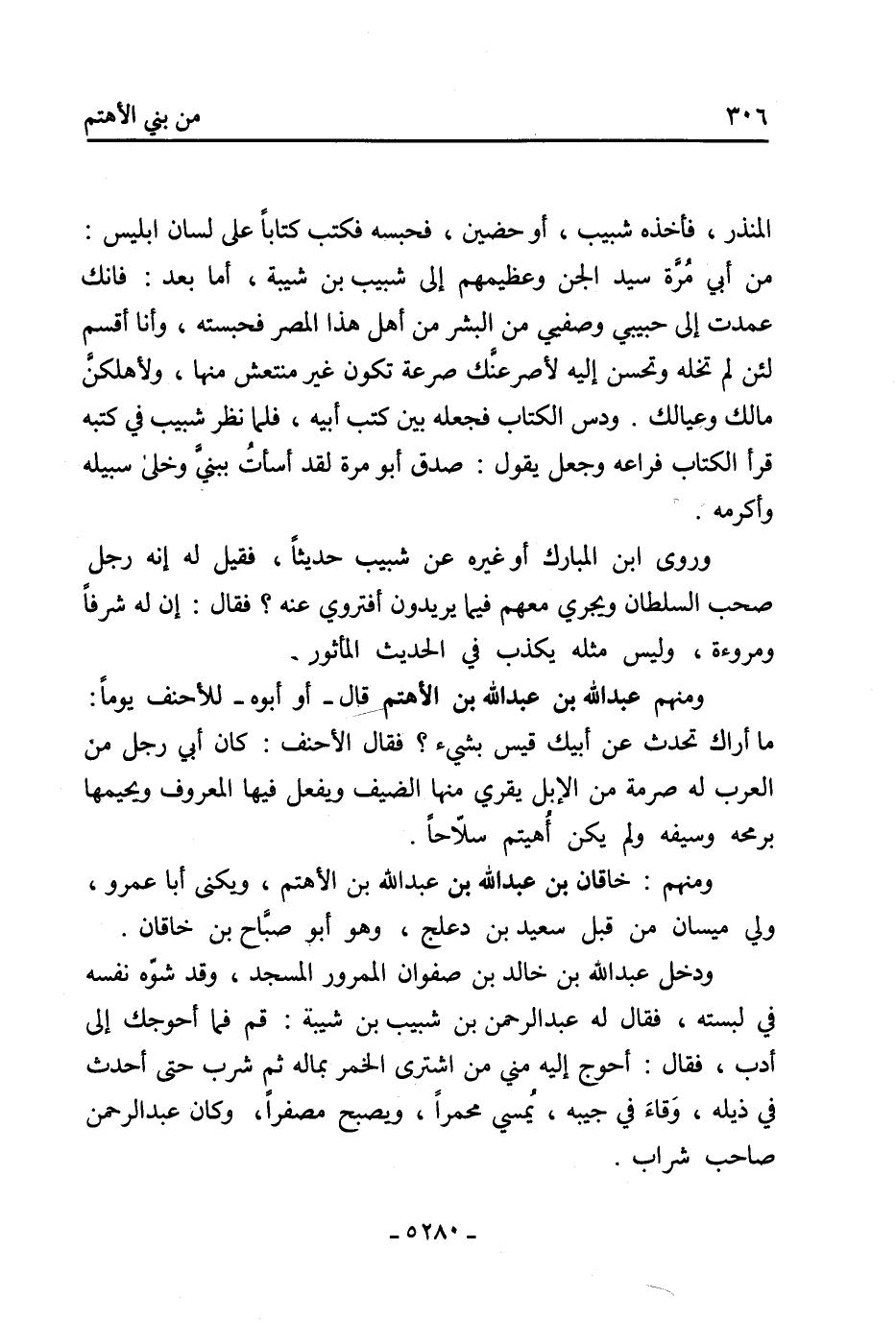 المنذر، فأخذه شبيب، أو حضين، فحبسه فكتب كتابا على لسان إبليس: