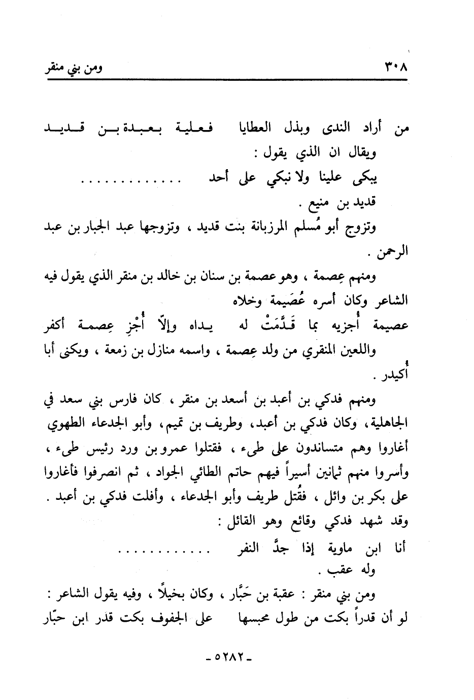 ومنهم فدكي بْن أعبد بْن أسعد بْن منقر،