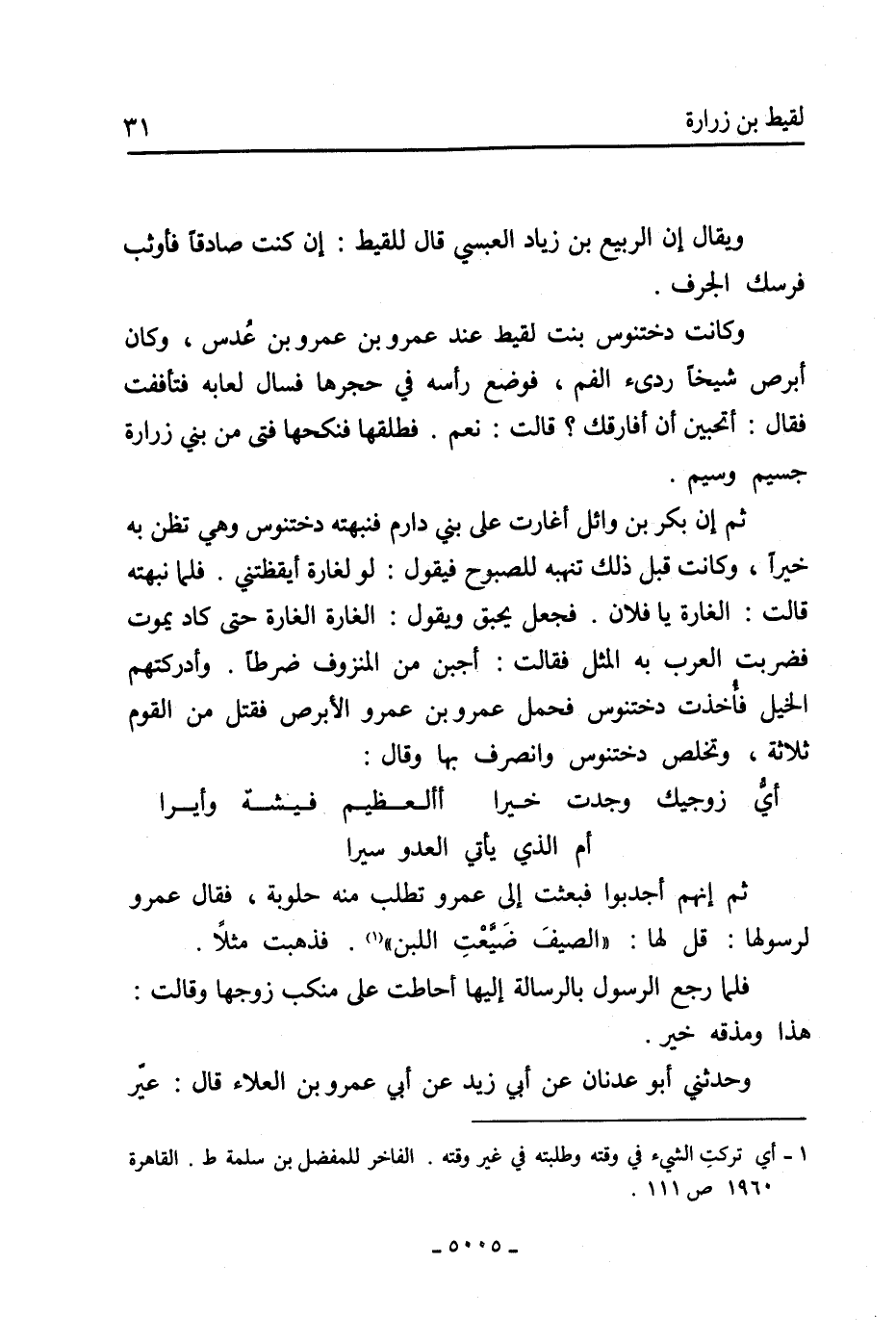 [1] أي تركت الشيء في وقته وطلبته في غير وقته. الفاخر للمفضل بن سلمة ط. القاهرة 1960 ص 111.