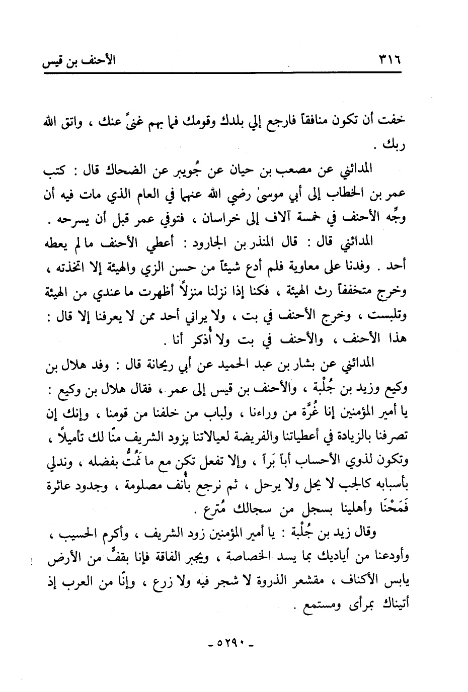 الْمَدَائِنِيُّ عَنْ مُصْعَبِ بْنِ حَيَّانَ عَنْ جُوَيْبِرٍ عَنِ الضَّحَّاكِ قَالَ: كَتَبَ عُمَرُ بْنُ الْخَطَّابِ إِلَى أَبِي مُوسَى رَضِيَ اللَّه عَنْهُمَا فِي الْعَامِ الَّذِي مَاتَ فِيهِ أَنْ وَجِّهِ الأَحْنَفَ فِي خَمْسَةِ آلافٍ إِلَى خُرَاسَانَ، فَتُوُفِّيَ عُمَرُ قَبْلَ أَنْ يُسَرِّحَهُ.