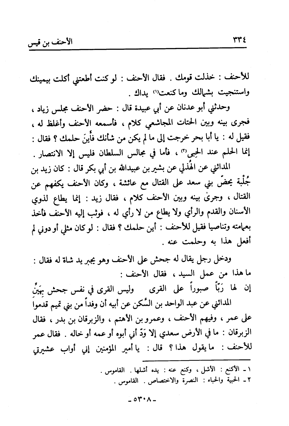 للأحنف: خذلت قومك. فقال الأحنف: لو كنت أطعتني أكلت بيمينك واستنجيت بشمالك وما كنعت [1] يداك.