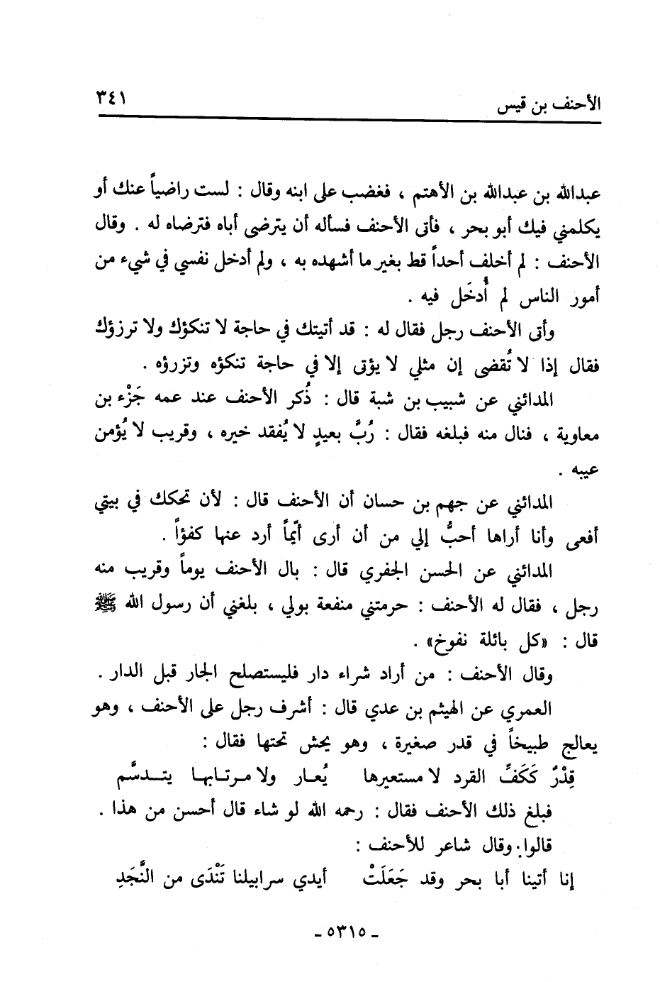 فبلغ ذلك الأحنف فقال: رحمه اللَّه لو شاء قال أحسن من هذا.