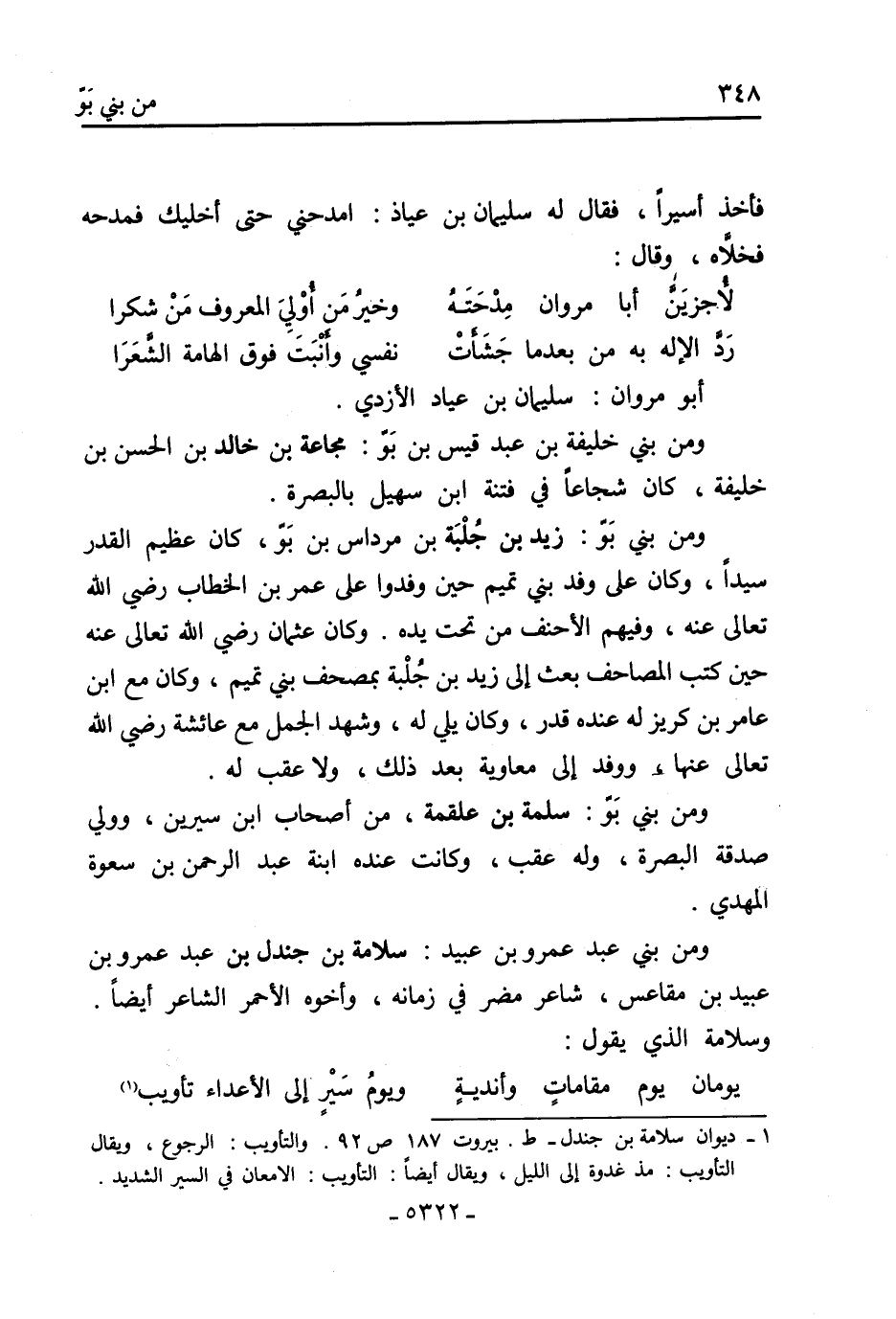 ومن بني بَوّ: زَيْد بْن جُلْبَة بْن مرداس بْن بَوّ،