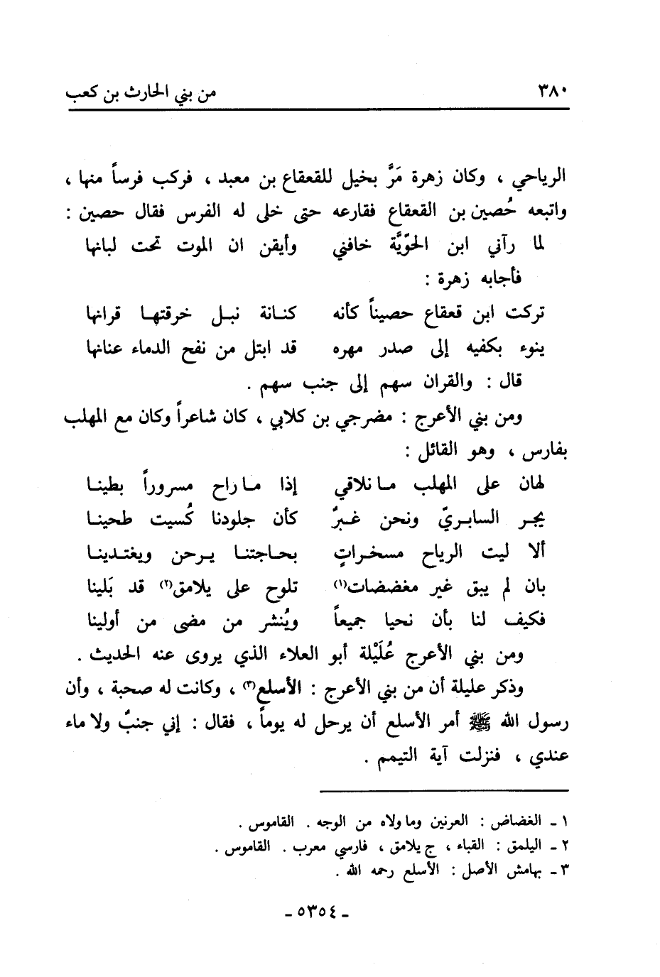 وذكر عليلة أن من بني الأعرج: الأسلع [3] ، وكانت له صحبة، وأن رسول الله صَلَّى اللَّهُ عَلَيْهِ وَسَلَّمَ أمر الأسلع أن يرحل له يومًا، فقال: إني جنبٌ ولا ماء عندي، فنزلت آية التيمم.