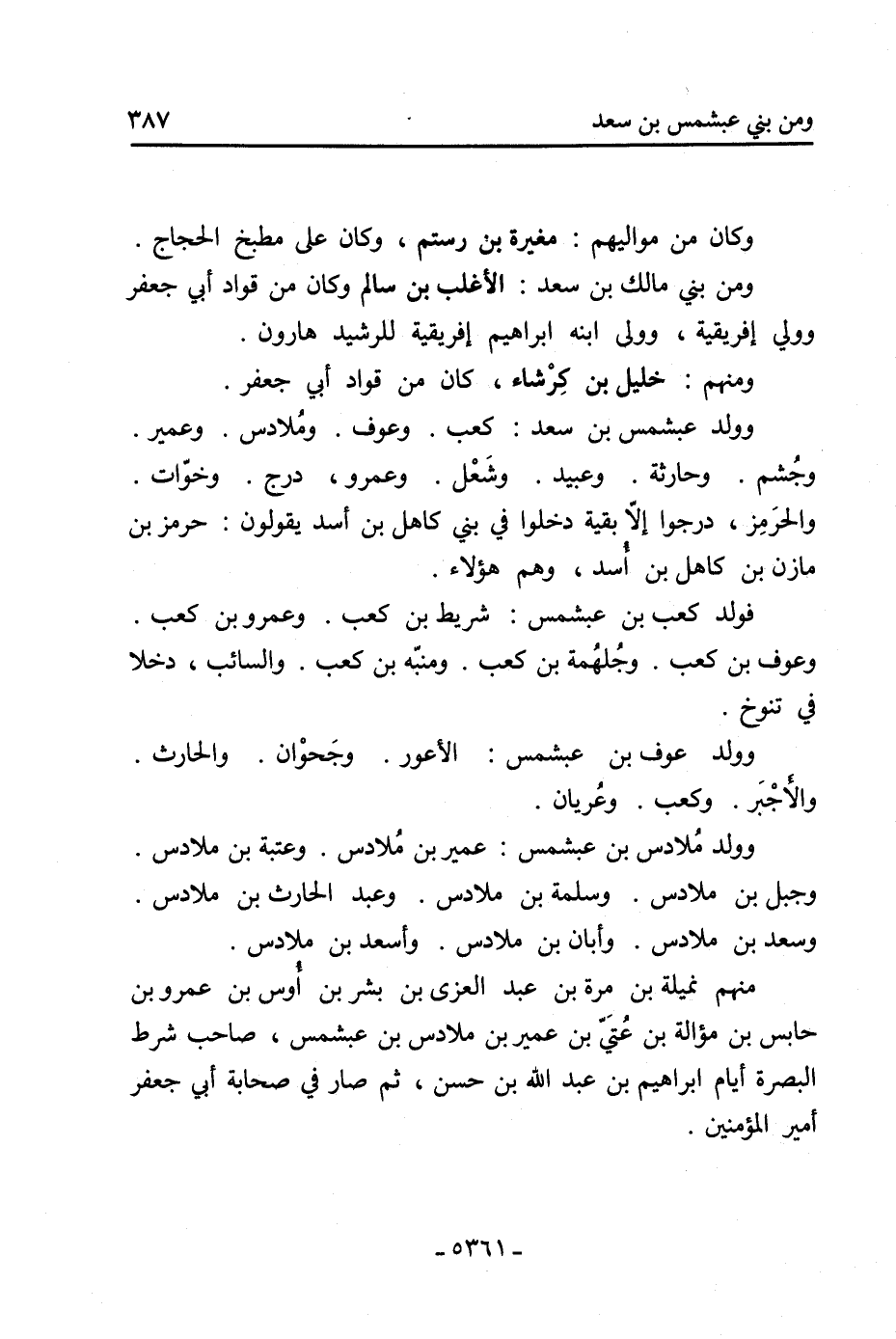 وجُشم. وحارثة. وعبيد. وشَعْل. وعمرو، درج. وخوّات.