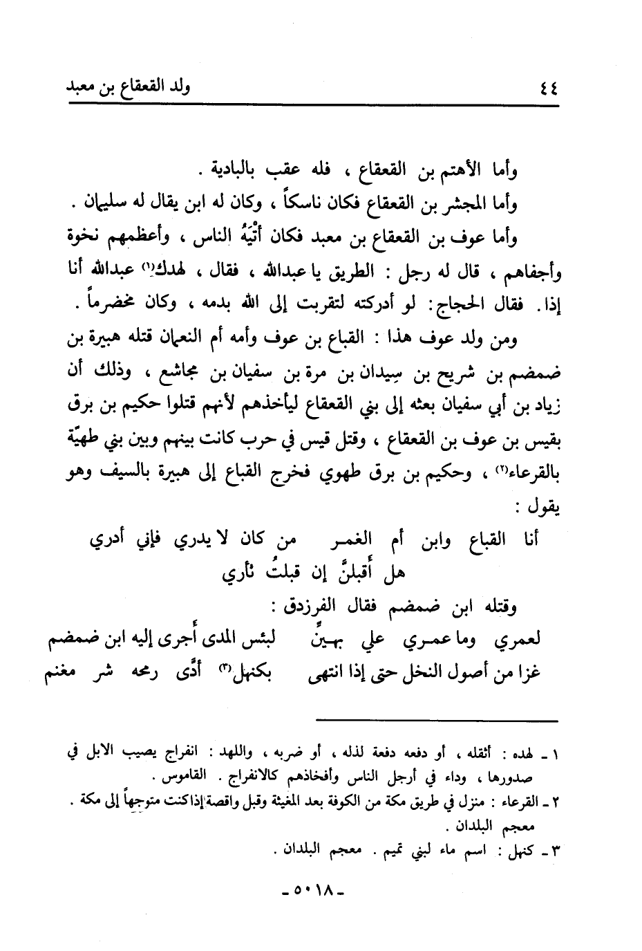 [2] القرعاء: منزل في طريق مكة من الكوفة بعد المغيثة وقبل واقصة إذا كنت متوجها إلى مكة.