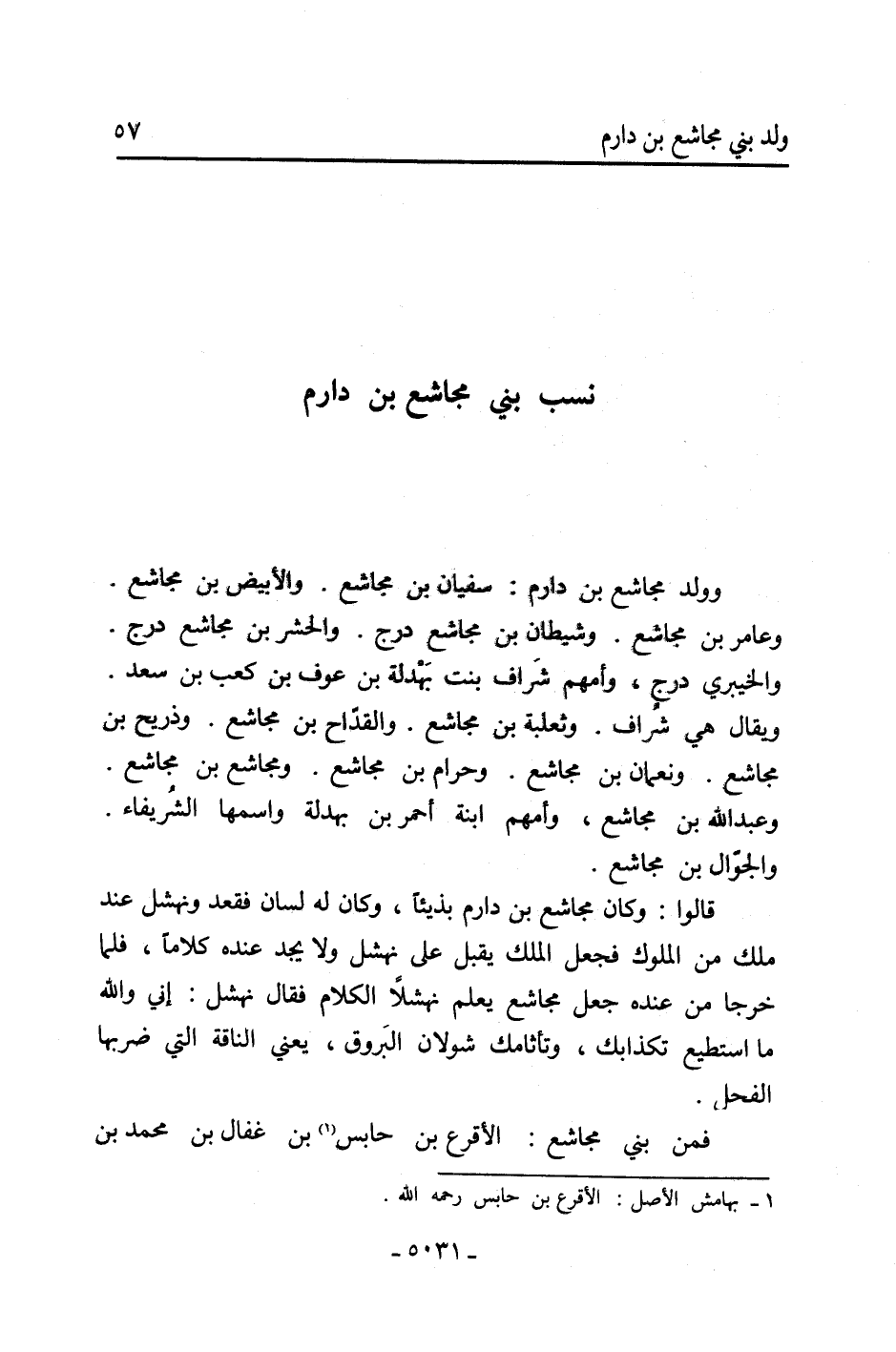 نسب بني مجاشع بْن دارم