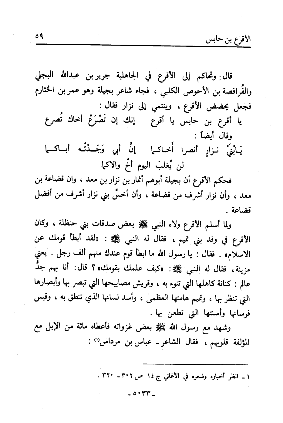 قال: وتحاكم إِلَى الأقرع فِي الجاهلية جرير بْن عَبْد اللَّه البجلي والفُرافصة بْن الأحوص الكلبي، فجاء شاعر بجيلة وهو عُمَر بْن الخثارم فجعل يحضض الأقرع، وينتمي إِلَى نزار فقال: