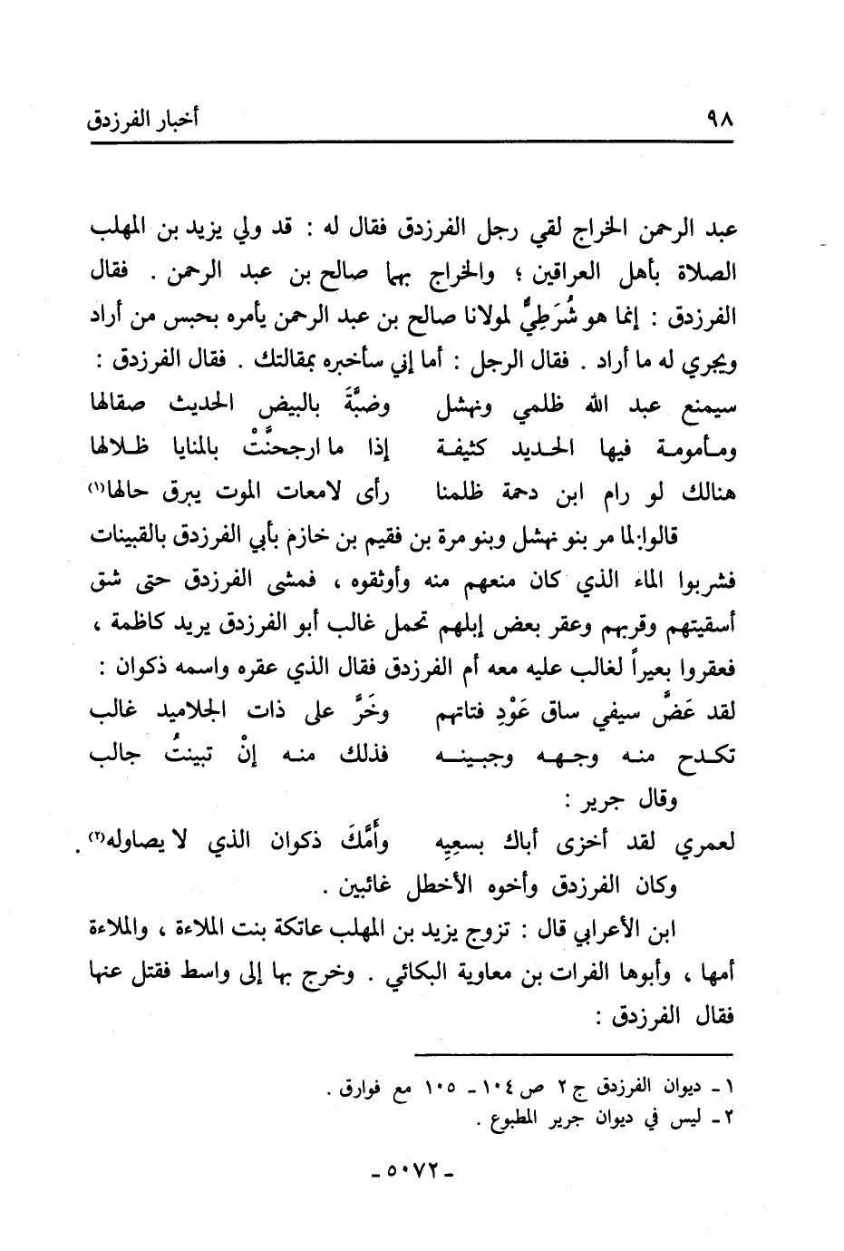 [1] ديوان الفرزدق ج 2 ص 104- 105 مع فوارق.