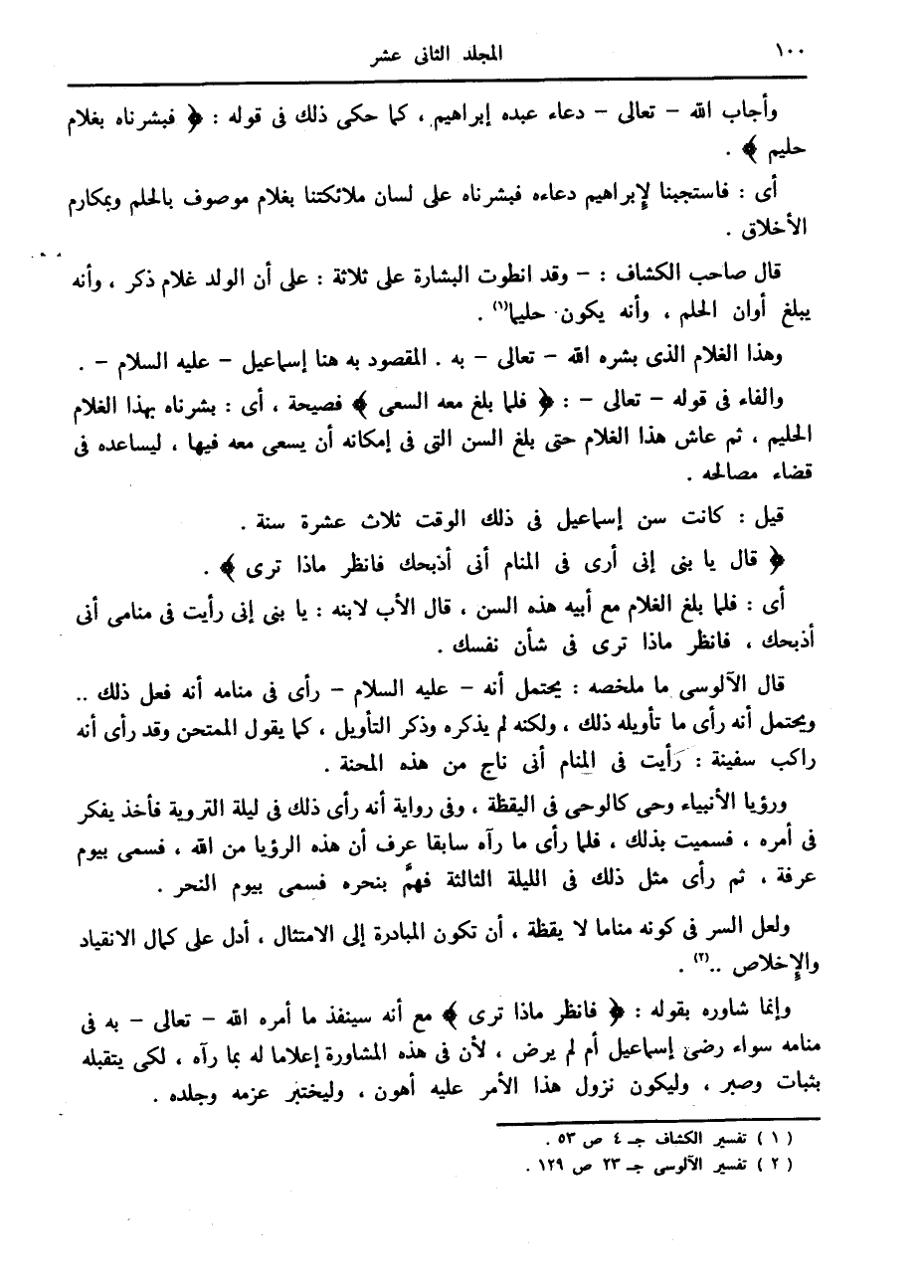 والفاء في قوله- تعالى-: فَلَمَّا بَلَغَ مَعَهُ السَّعْيَ فصيحة، أى: بشرناه بهذا الغلام الحليم، ثم عاش هذا الغلام حتى بلغ السن التي في إمكانه أن يسعى معه فيها، ليساعده في قضاء مصالحه.