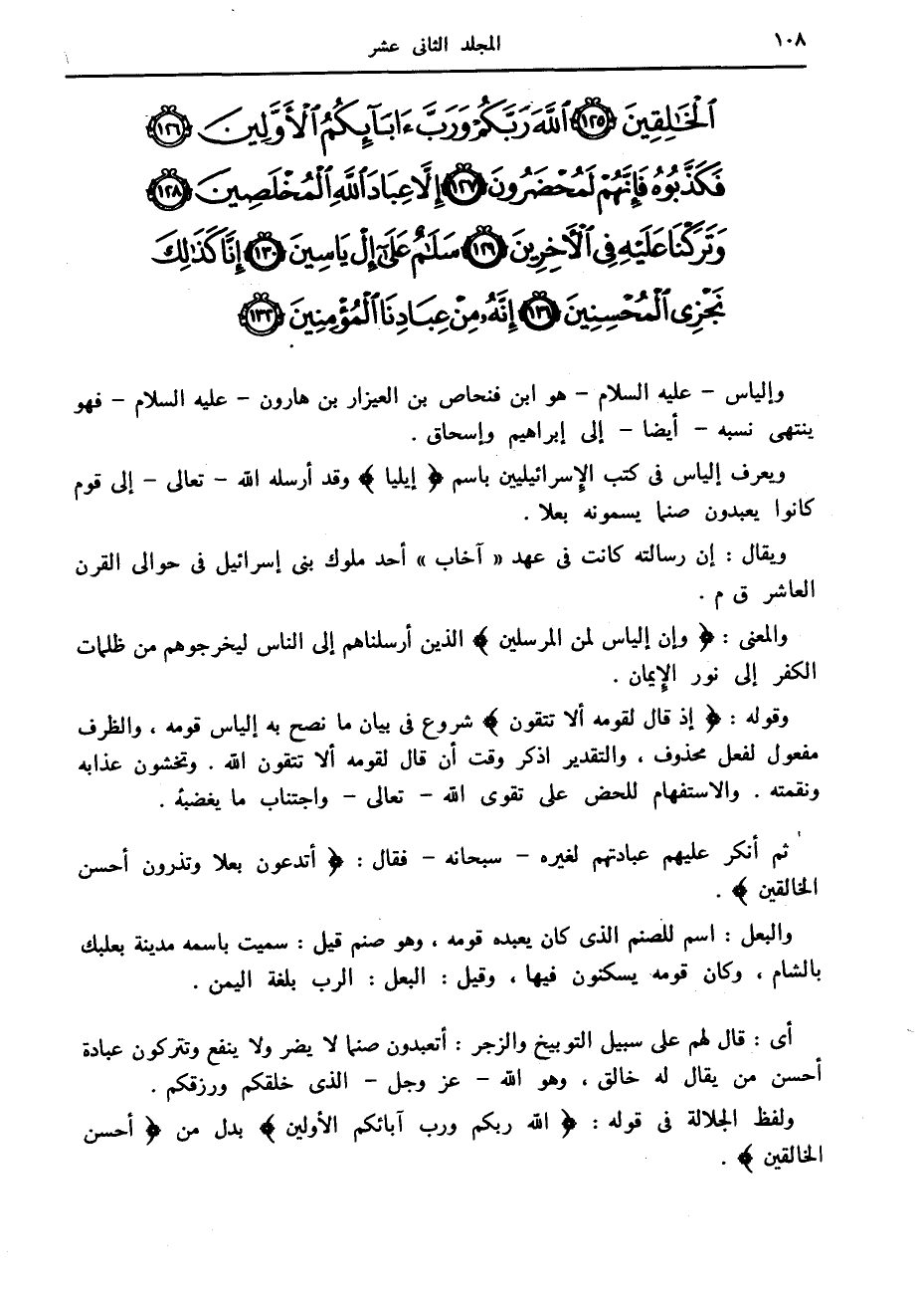 وقوله: إِذْ قالَ لِقَوْمِهِ أَلا تَتَّقُونَ شروع في بيان ما نصح به إلياس قومه، والظرف مفعول لفعل محذوف، والتقدير اذكر وقت أن قال لقومه ألا تتقون الله. وتخشون عذابه ونقمته. والاستفهام للحض على تقوى الله- تعالى- واجتناب ما يغضبه.