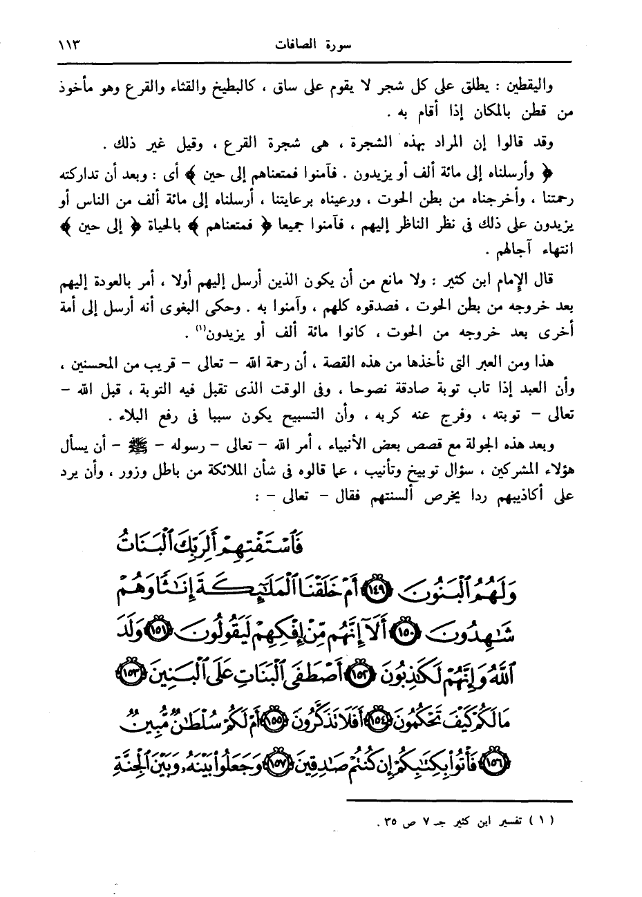 وَأَرْسَلْناهُ إِلى مِائَةِ أَلْفٍ أَوْ يَزِيدُونَ. فَآمَنُوا فَمَتَّعْناهُمْ إِلى حِينٍ أى: وبعد أن تداركته رحمتنا، وأخرجناه من بطن الحوت، ورعيناه برعايتنا، أرسلناه إلى مائة ألف من الناس أو يزيدون على ذلك في نظر الناظر إليهم، فآمنوا جميعا فَمَتَّعْناهُمْ بالحياة إِلى حِينٍ انتهاء آجالهم.